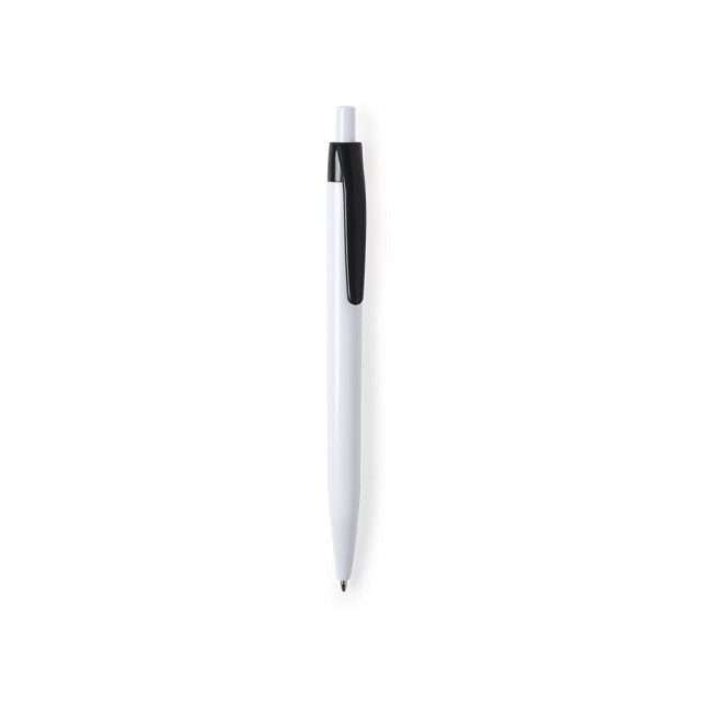 Penna a sfera a pulsante dal design casual bicolore. Con corpo bianco e clip in una vasta gamma di colori. Ampia superficie di stampa e in inchiostro blu.