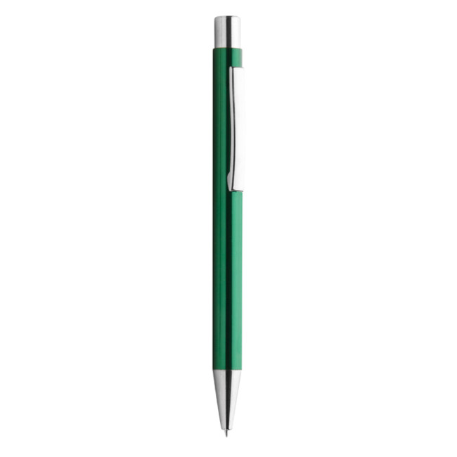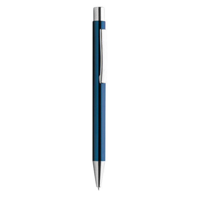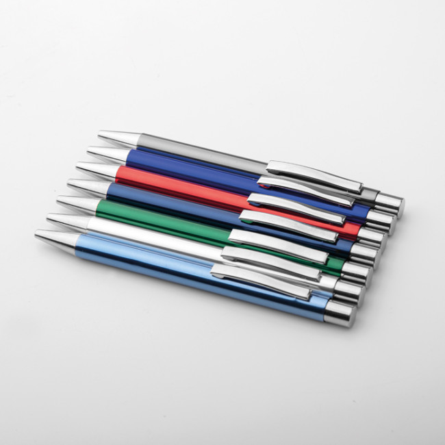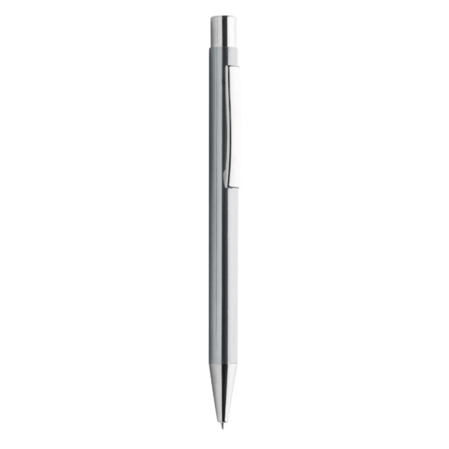 penna a sfera in metallo meccanismo a scatto fusto colore metallizzato minuterie in metallo cromato refill nero