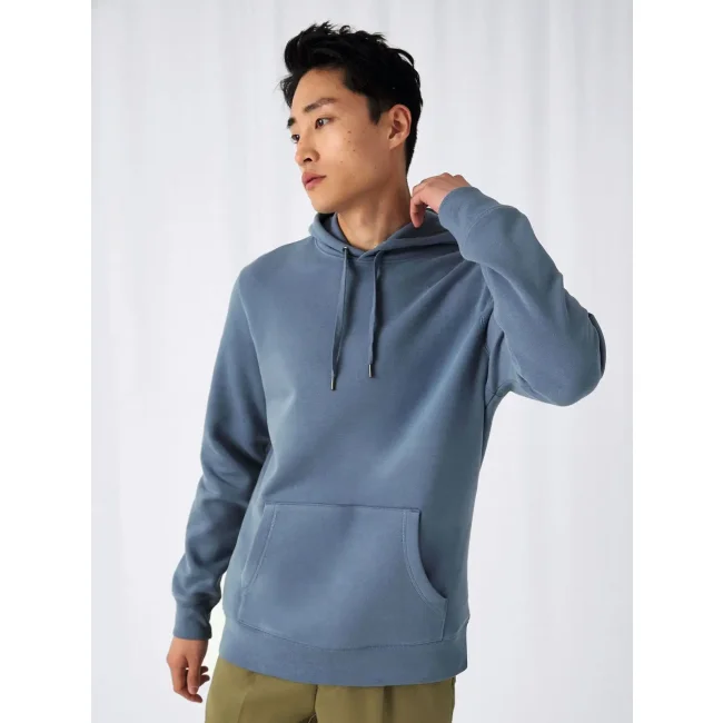 80% Cotone ring-spun pettinato, preristretto, 20% Poliestere. Felpa di alta qualità con cappuccio foderato in jersey, cordoncini piatti con punte di metallo, struttura con cuciture laterali, nastro parasudore resistente, mezzaluna in single Jersey sulla schiena per un look premium e una maggiore durata nel tempo. Tessuto PST, felpata internamente, esterno 100% cotone pettinato.