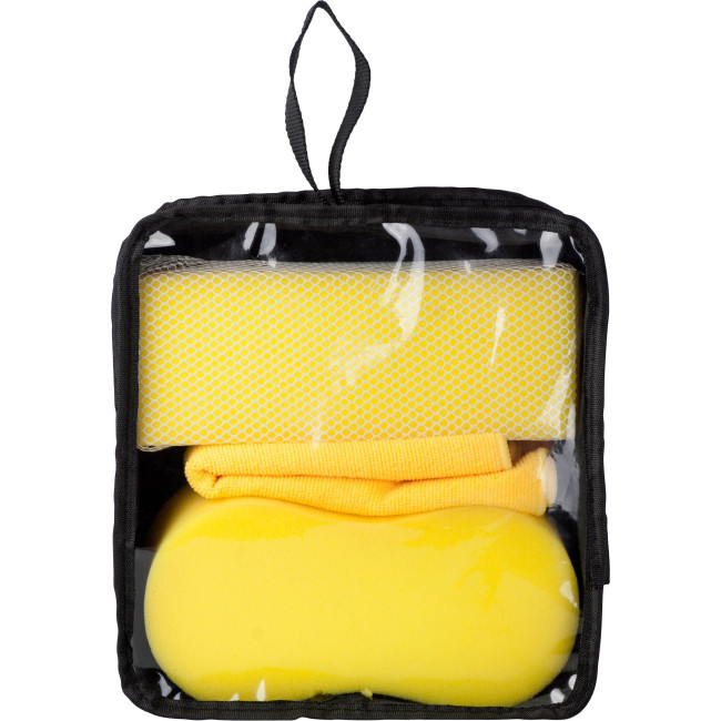Kit in PU 3 pezzi per il lavaggio dell'automobile, contiene spugna morbida, spugna con rete ed asciugamano in microfibra