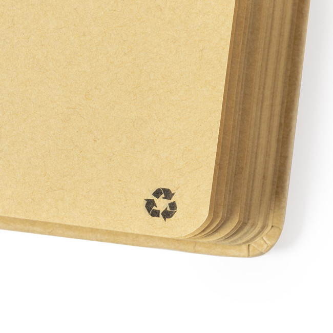Block Note - formato A5 - della linea natura con copertina rigida in robusto cartone riciclato. 100 fogli lisci con rifinitura kraft, etichetta riciclata, con rilegatura elastica e segnalibro in tessuto abbinato.