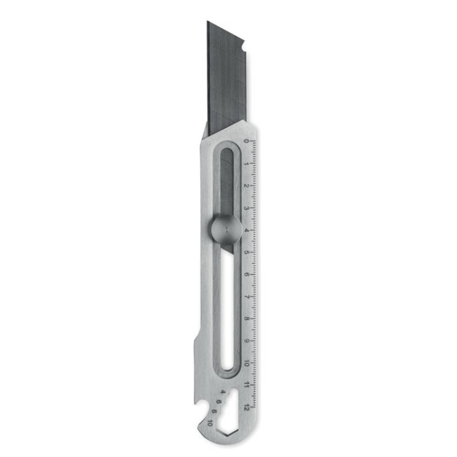 Coltello retrattile in acciaio inox con 8 lame in acciaio al carbonio, apribottiglie, chiave inglese e righello.