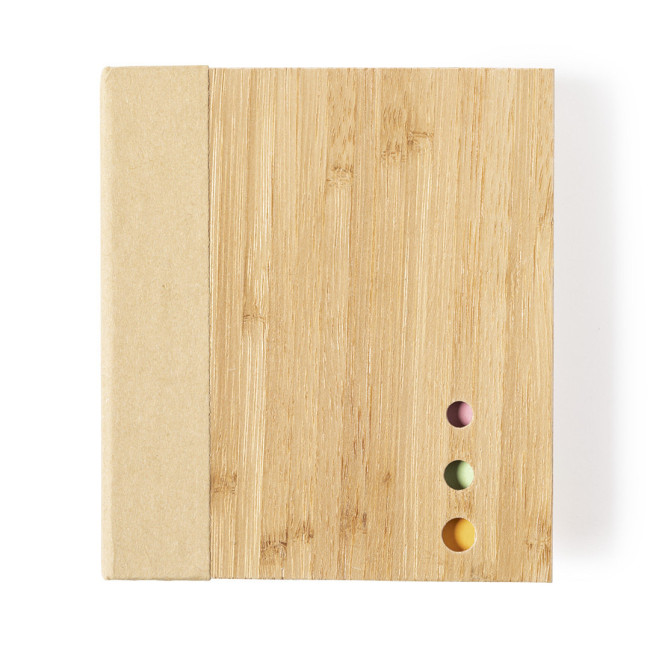 Porta post it della linea Natura con coperchio rigido in bambù. Con 115 post it kraft, 115 post it medi e 420 mini post it.