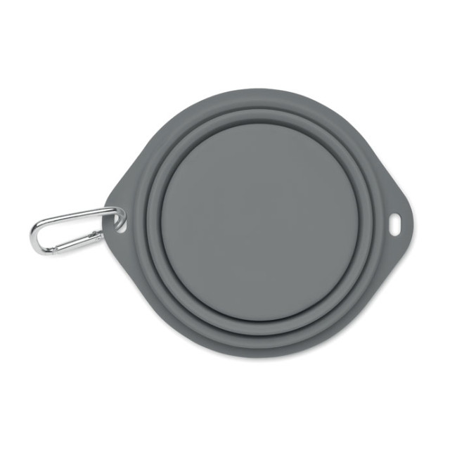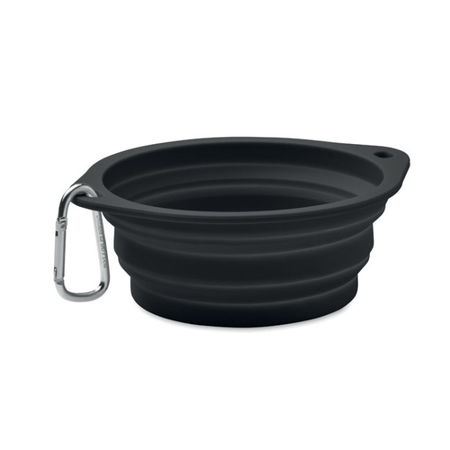 Ciotola portatile pieghevole in silicone per bere o mangiare con moschettone. Capacità: 350 ml.