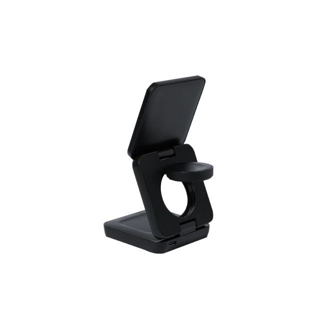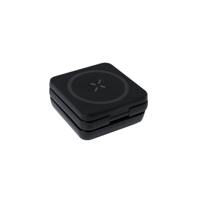 Caricatore wireless magnetico 4 in 1 da 15W, realizzato in ABS riciclato (RABS). Progettato per la ricarica simultanea di smartphone, auricolari, smartwatch e supporti. Un gadget tutto in uno: pieghevole, portatile, di dimensioni compatte, molto versatile e dal design funzionale. Con finitura opaca e tocco gommoso. Connessione tramite usb Tipo C -cavo incluso-.Il RABS è una plastica altamente riciclabile di grande resistenza e con molteplici applicazioni che lo rendono una soluzione eco-friendly.Realizzato in conformità agli standard RoHS e in compliance con i seguenti requisiti di sicurezza:Sistema di protezione contro il surriscaldamento.Sistema di protezione contro il sovraccarico.Sistema di blocco per evitare cortocircuiti.