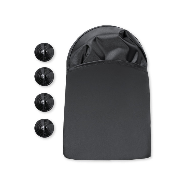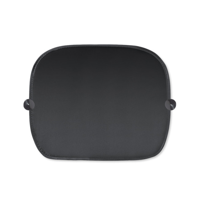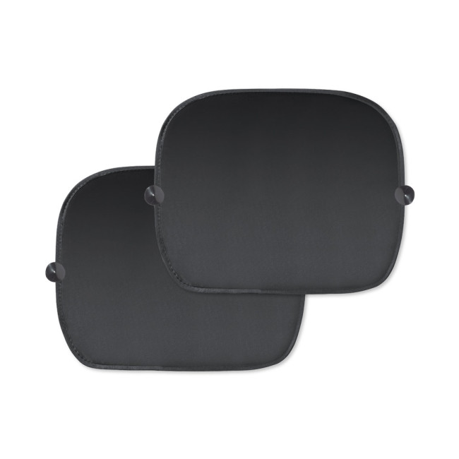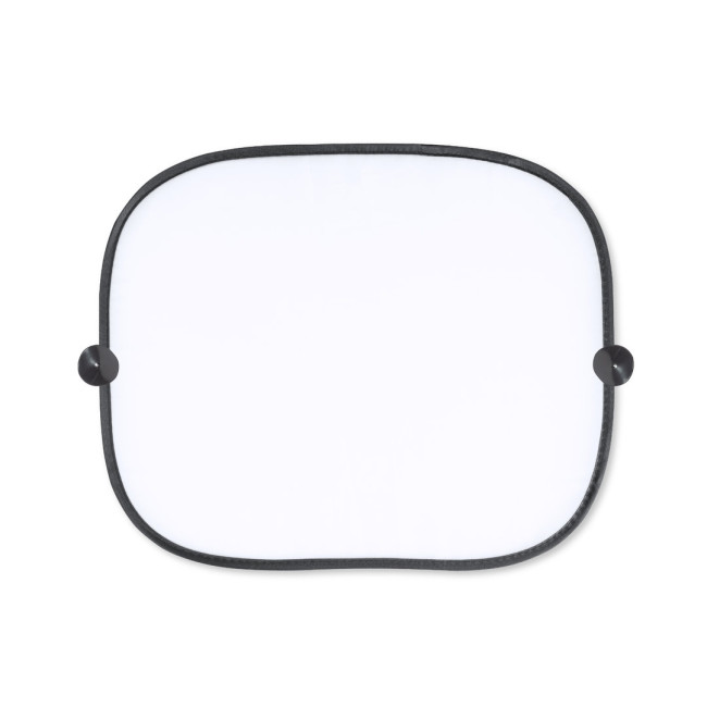 Originale set di 2 parasoli pieghevoli per finestre, realizzati in resistente poliestere. Leggeri e di dimensioni 44 x 36 cm ciascuno, sono dotati di profili rinforzati e di fissaggio a ventosa (4 unità incluse). Con sistema di ripiegamento facile e custodia individuale abbinata. Colore bianco specifico per la sublimazione.