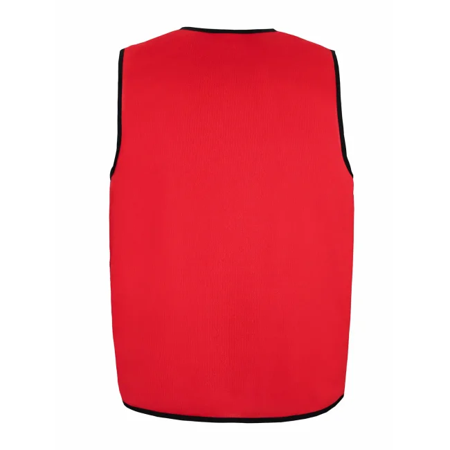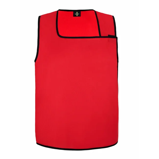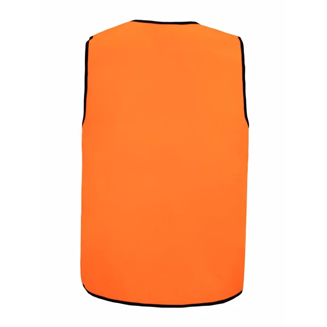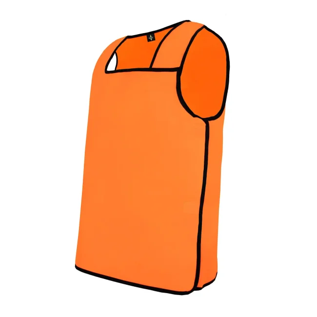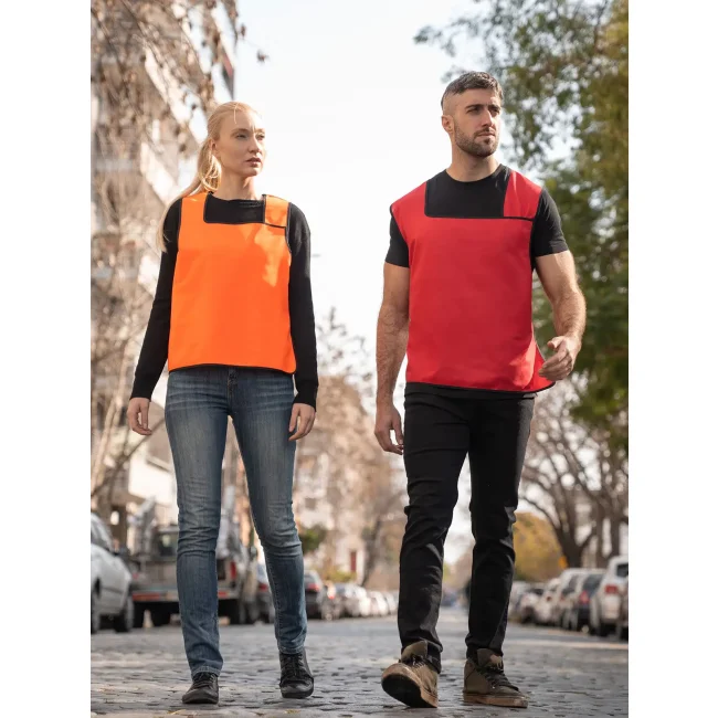 100% poliestere. Gilet facilmente visibile grazie ai colori sgargianti, dal design semplice, chiudibile con velcro laterale, quindi ampia area di stampa anche sul davanti, tessuto leggero in 100% poliestere, giallo e arancione certificati secondo EN 17353.