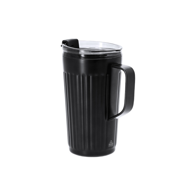 Tazza termica realizzata in acciaio inossidabile riciclato con doppia parete e capacità di 350 ml. Esterno con finitura smussata in colore metallico opaco. Include un coperchio trasparente a innesto facile, con apertura a ribaltina. Inoltre, ha un foro per la cannuccia con coperchio in silicone, senza BPA. Base in silicone antiscivolo e logo in acciaio inossidabile riciclato.L'acciaio è uno dei materiali più richiesti e si trova praticamente ovunque, dai prodotti di tutti i giorni alle grandi costruzioni. Con innumerevoli proprietà, tra cui durabilità e un alto livello di riciclabilità, è una soluzione molto apprezzata per le soluzioni sostenibili. Trattato correttamente, si possono ottenere nuove risorse di uso infinito.