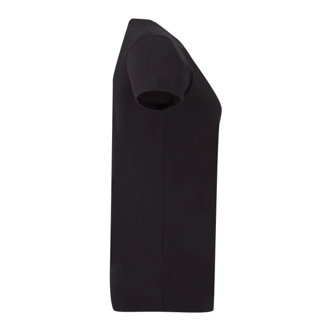 100% cotone filato ad anello pettinato. T-shirt manica corta dal taglio femminile, con cuciture laterali e leggermente sfiancata. Tessuto morbido al tatto, scollo a V stretto in costina 1x1, fettuccia sul collo dello stesso tessuto del corpo, nuova etichetta nel collo rimovibile.