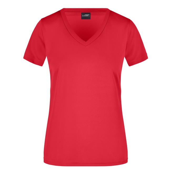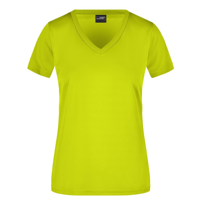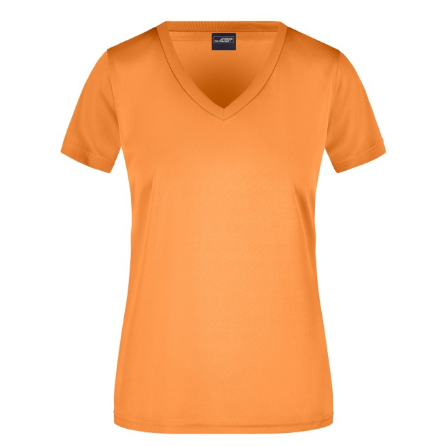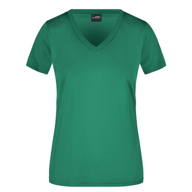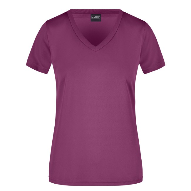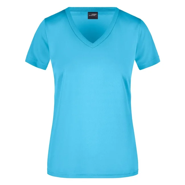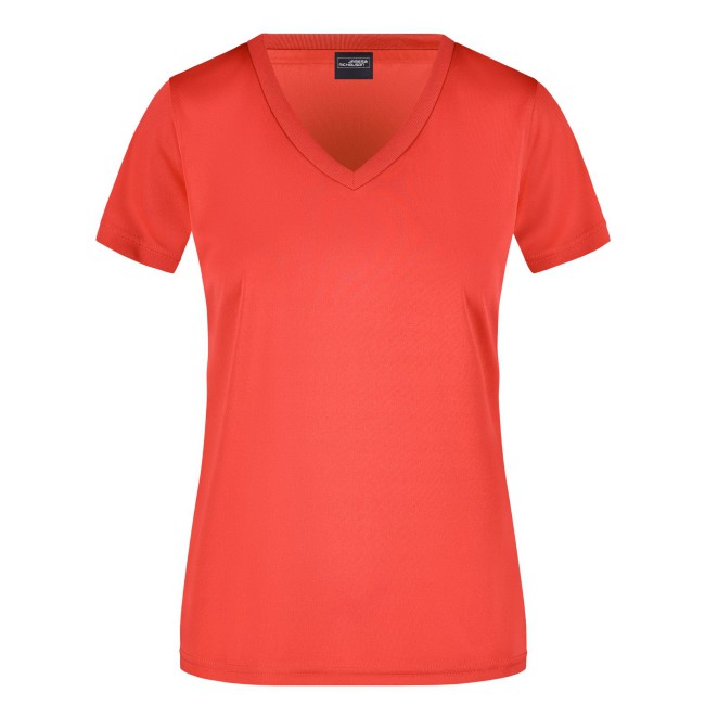 100% poliestere. T-shirt per il tempo libero e sport Single jersey, Scollo a V , parasudore, Cuciture doppie sulle spalle e sul giro manica, Traspirante, autoregolazione dell'umidità, Asciugatura rapida. Tear off!®-etichetta removibile, svasata, Tessuto esterno (150 g/m²). Manica corta, taglia donne 3XL.