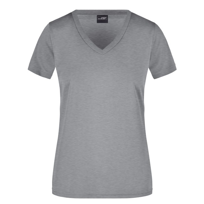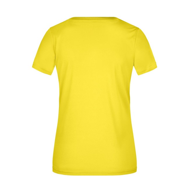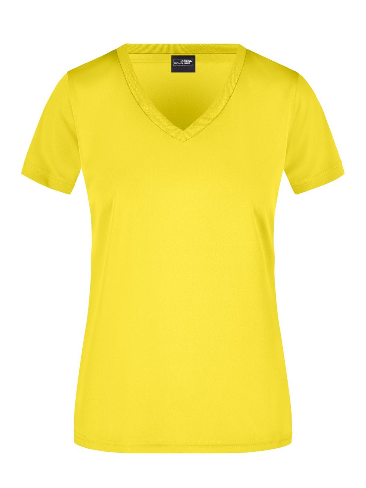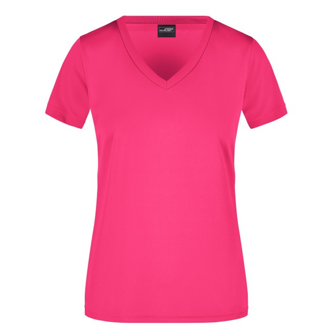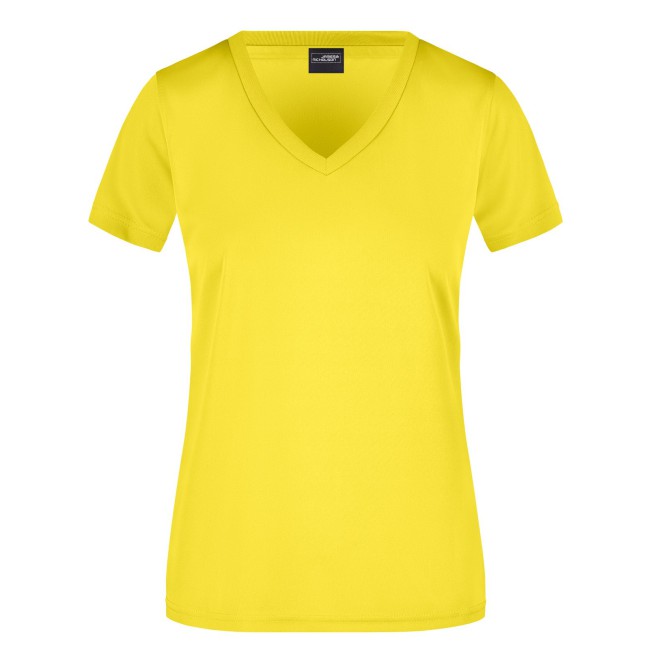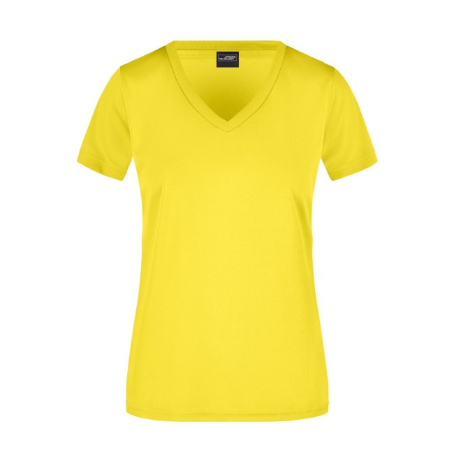 100% poliestere. T-shirt per il tempo libero e sport Single jersey, Scollo a V , parasudore, Cuciture doppie sulle spalle e sul giro manica, Traspirante, autoregolazione dell'umidità, Asciugatura rapida. Tear off!®-etichetta removibile, svasata, Tessuto esterno (150 g/m²). Manica corta, taglia donne 3XL.