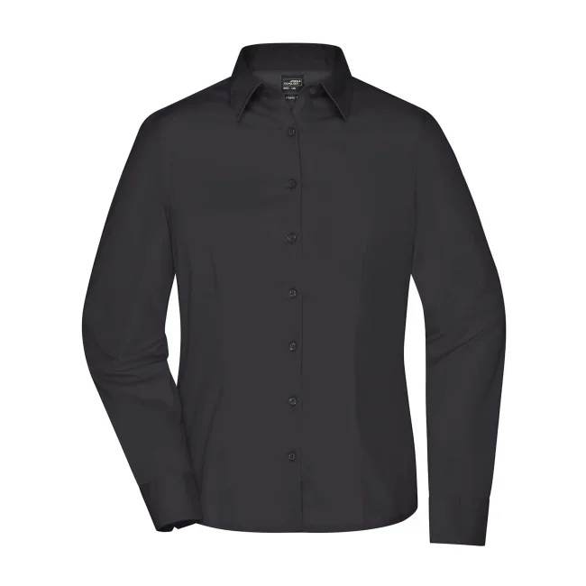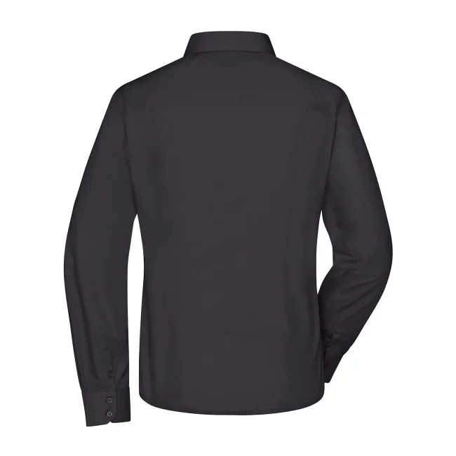 50% cotone, 50% poliestere. Camicia classica con mix di tessuti durevoli Camicetta Popline facile da trattare, orlo arrotondato, Lavabile a 60 ° C, sagomata , taglio sciancrato femminile. easy care, Manica lunga, pence sulla schiena.