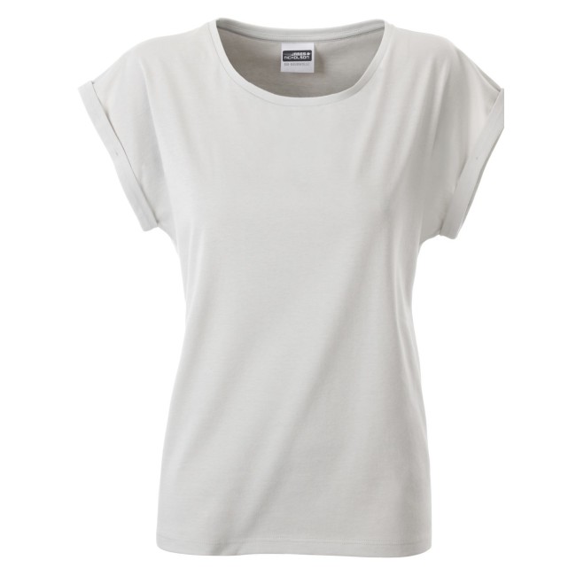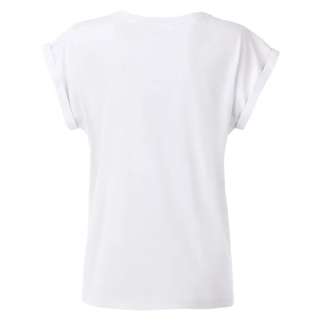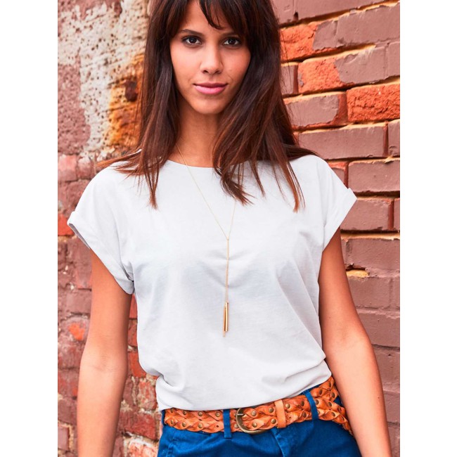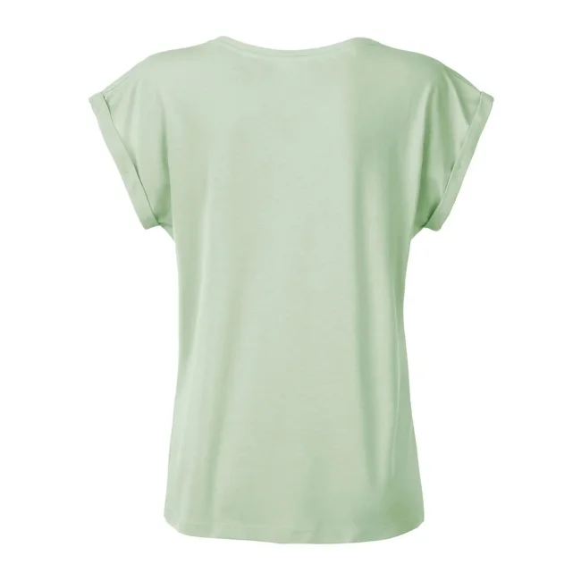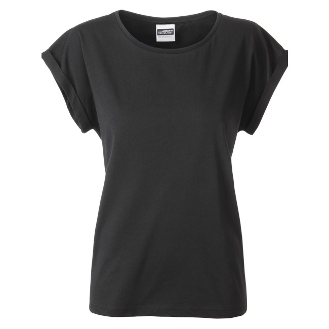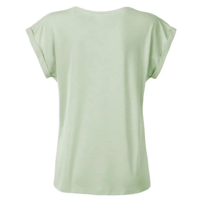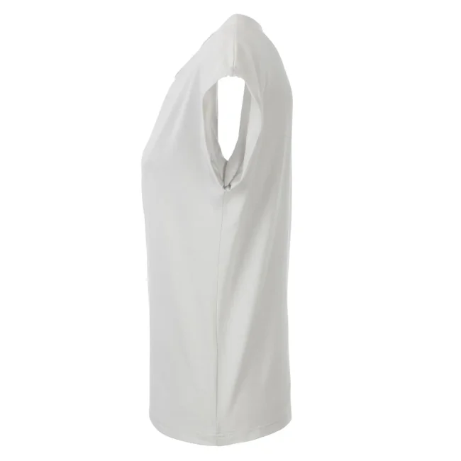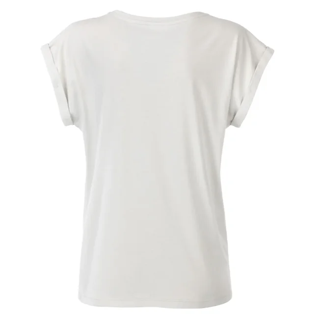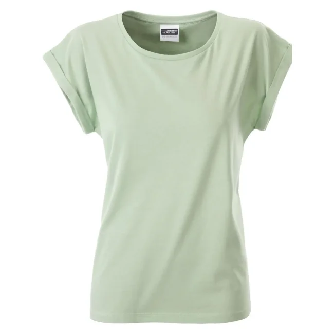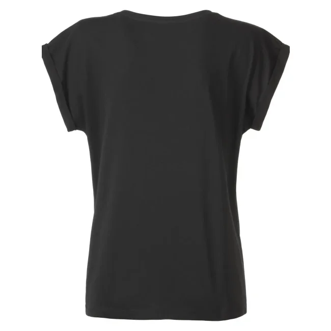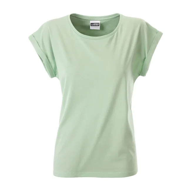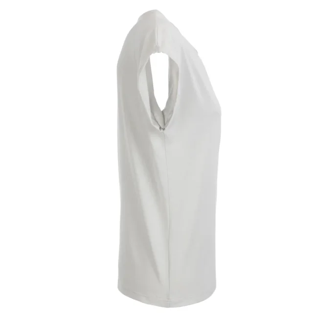 100% cotone organico. single jersey. T-shirt manica corta, girocollo profondo. Giromaniche arrotolate con elastane, etichetta strappabile, struttura con cuciture laterali.