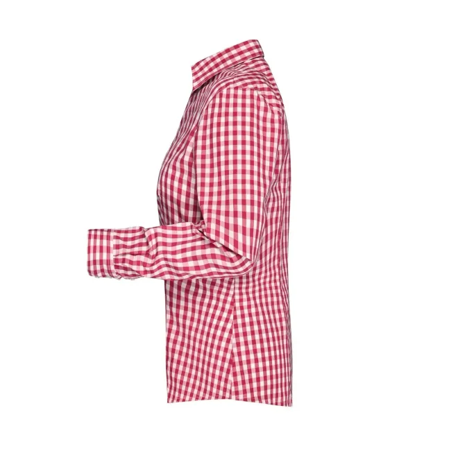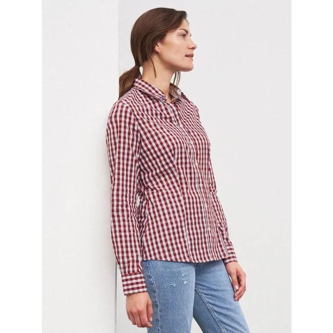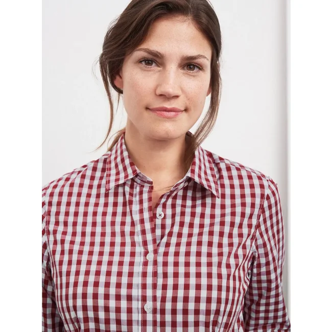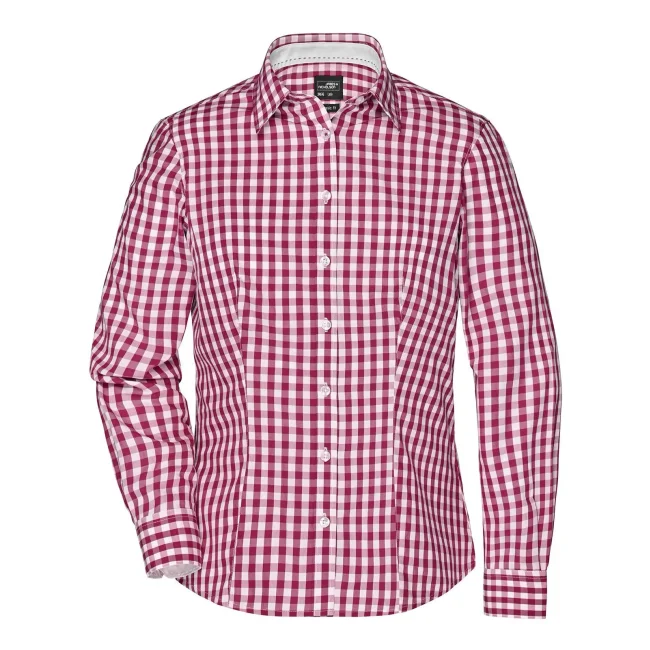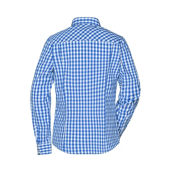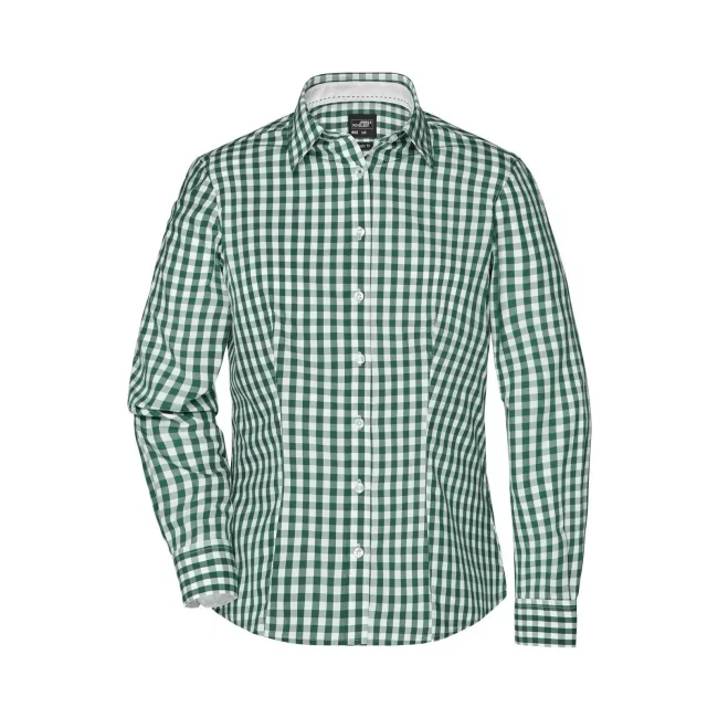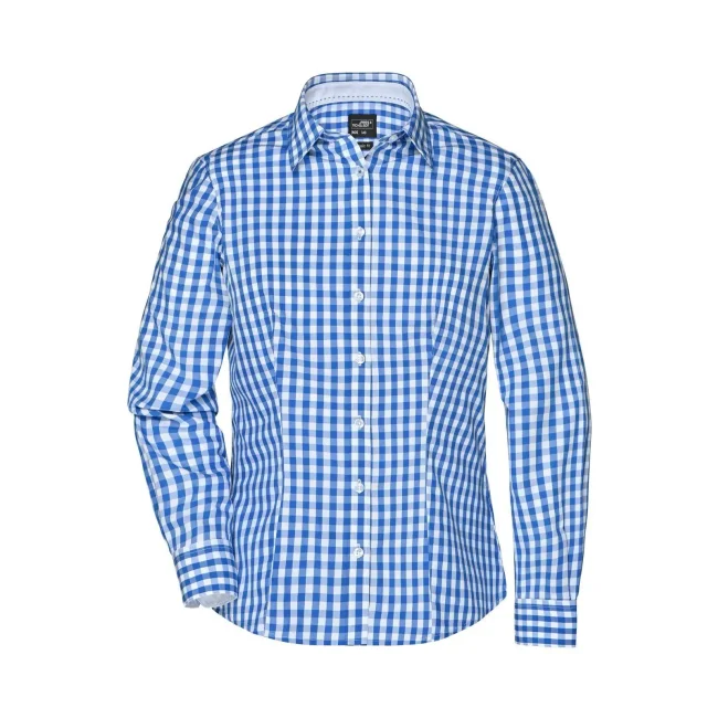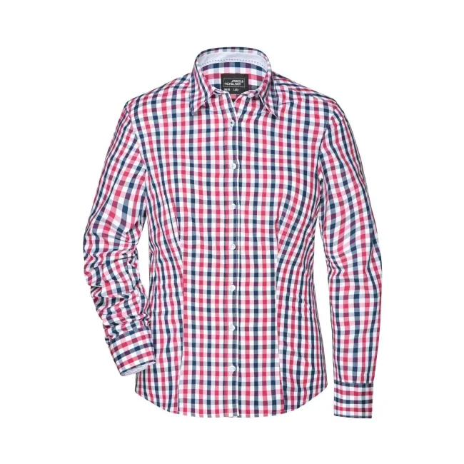 100% cotone. camicia fashion a quadri con inserti in tinta unita sul colletto e polsini. Tessuto in popeline di alta qualità, stiro facile, orlo arrotondato, taglio femminile avvitato.