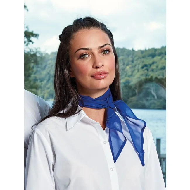 100% poliestere. Foulard multiuso in tessuto chiffon, disponibile in molti colori, larghezza 16.5 cm, lunghezza 98 cm, lavabile a mano.