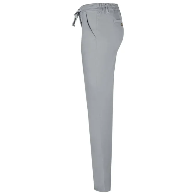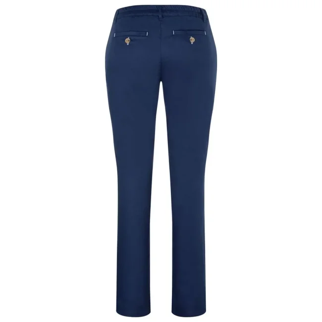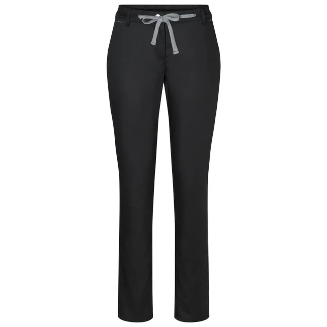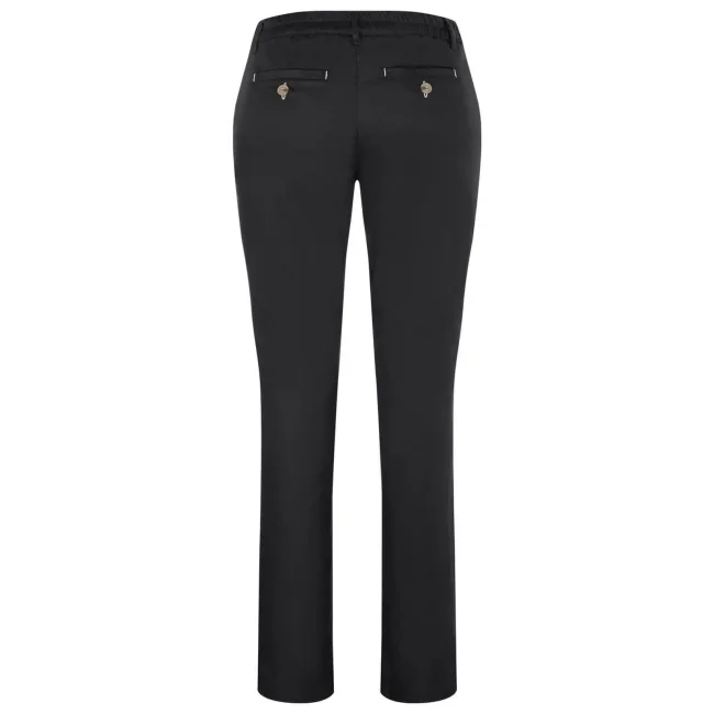 59% cotone, 39% poliestere, 2% elastan. Pantaloni informali da lavoro donna, leggeri, tessuto elasticizzato, taglio aderente, elastico flessibile e cordoncino in vita, orlo stretto, 2 tasche laterali e 2 tasche sul retro con bottoni, passanti della cintura.