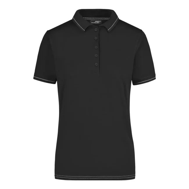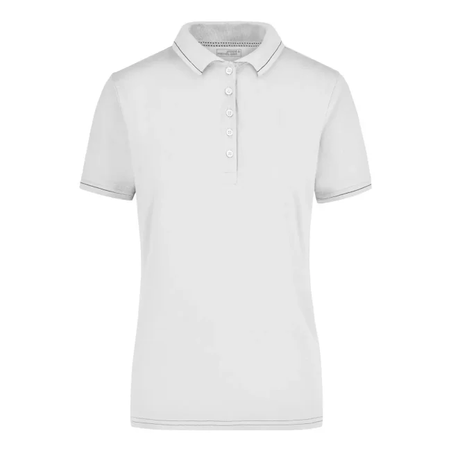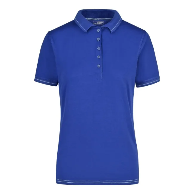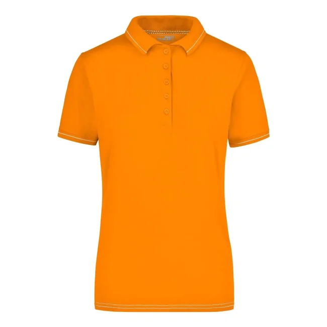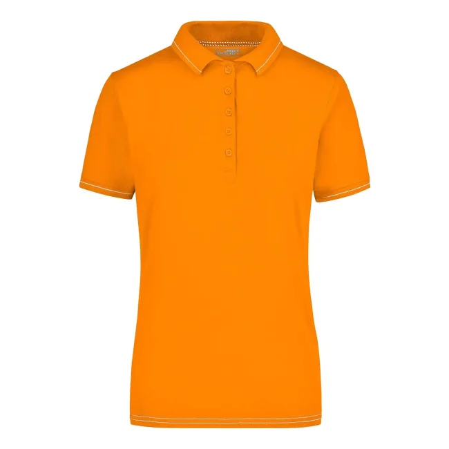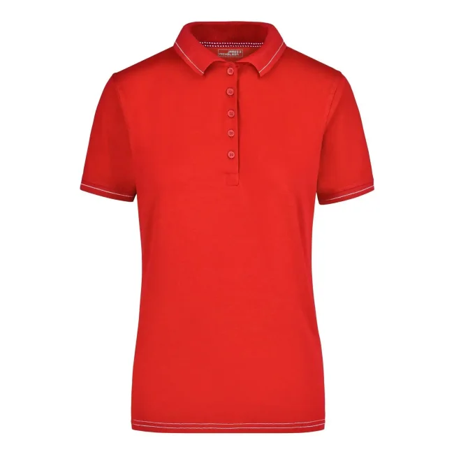 95% cotone, 5% elastan. Polo di alta qualità con righe a contrasto Morbido jersey elastico, Collo della polo in maglia e bande sulle maniche a contrasto, Nastro al collo, spacchi laterali. Bottoni in tono su tono, Leggermente avvitata, stretta, lunga distanza tra i 5 bottoni , Tessuto esterno (170 g/m²).