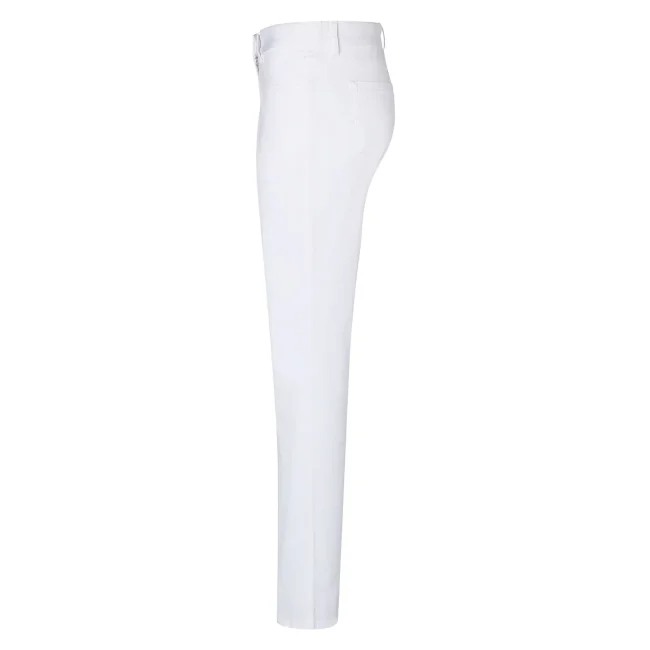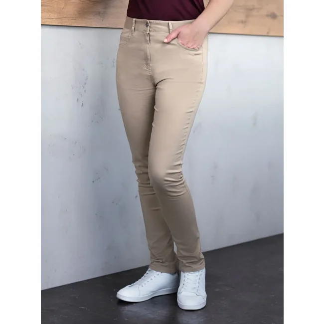 98% cotone, 2% elastan. Pantaloni casual da donna in stile classico a 5 tasche, sviluppato per le massime esigenze di lavaggio (bianca: lavabile a 95°C / colorata: lavabile a 60°C), modern-fit, orlo stretto, 2 tasche frontali, 1 tasca porta-monete a destra, 2 tasche posteriori, include passanti per cintura.