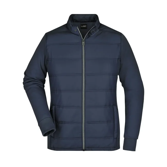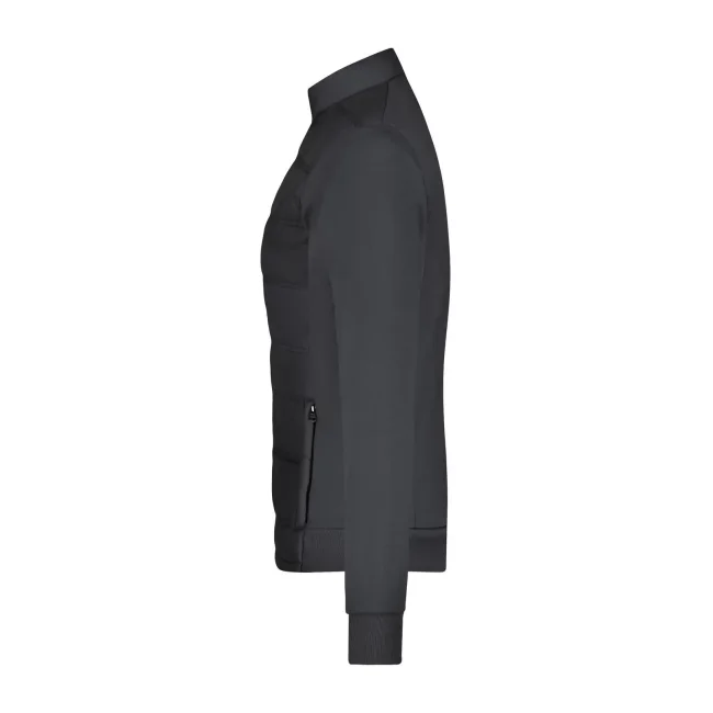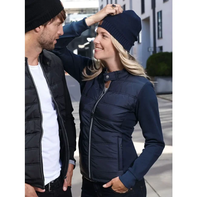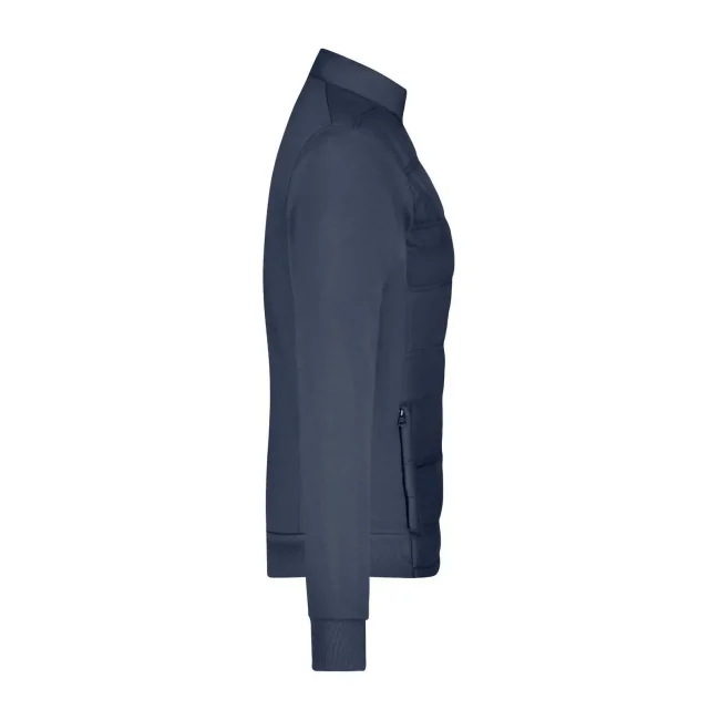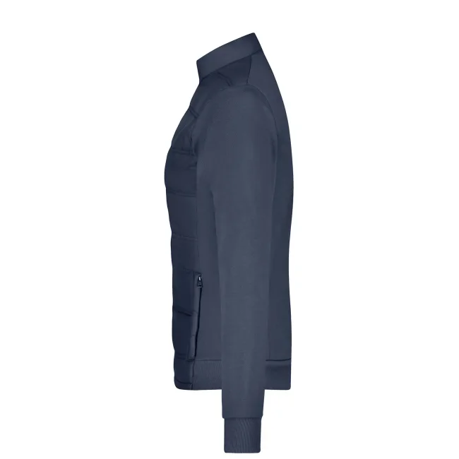 80% cotone, 20% poliestere. Giacca con imbottitura 100% poliestere. Retro e maniche di tessuto french terry, 2 tasche laterali con cerniera, 2 tasche interne. Leggermente sfiancata.