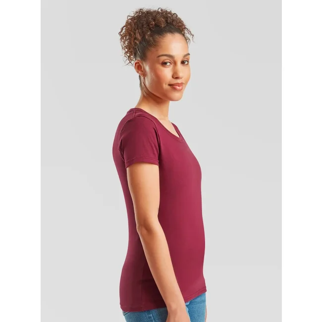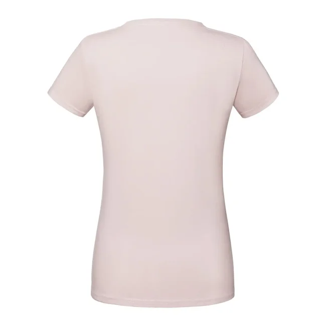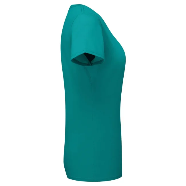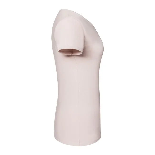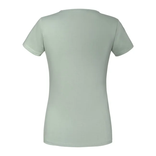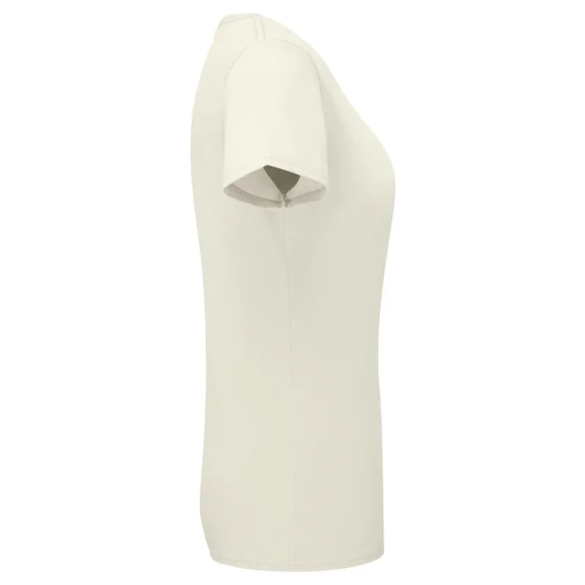 100% cotone filato ad anelli morbido al tatto. T-shirt maniche corte, girocollo in costina cot./lycra con cucitura a doppio ago, nastro di rinforzo da spalla a spalla dello stesso tessuto, leggermente sfiancata, struttura con cuciture laterali, lavabile a 60°. Col. 94: 97% cot. 3% pol. (Col. 30: 190 g/m²).