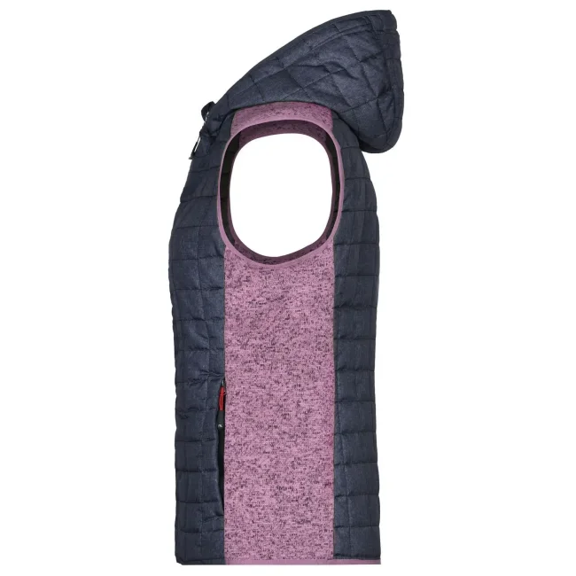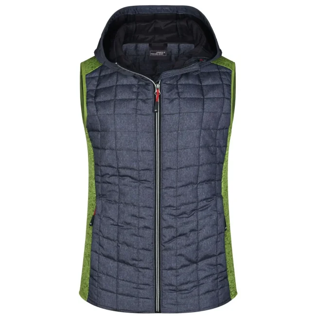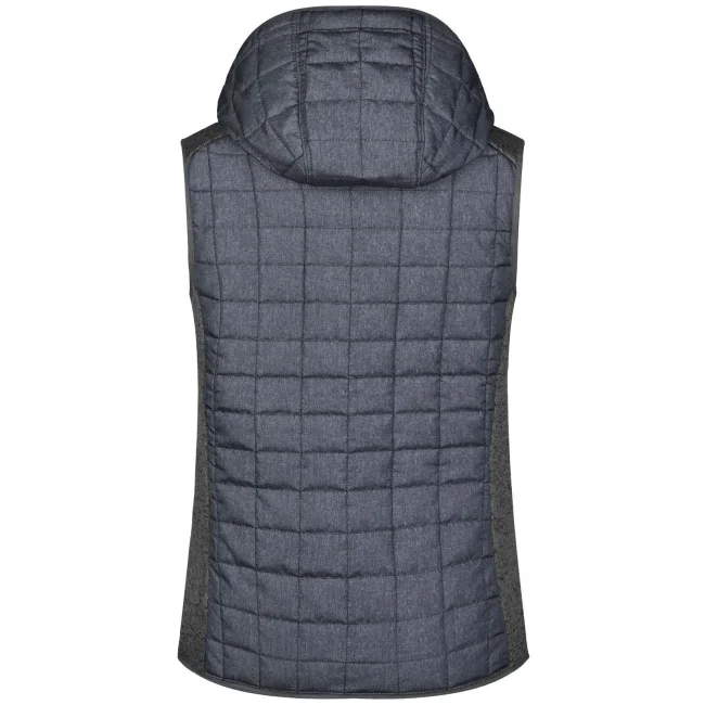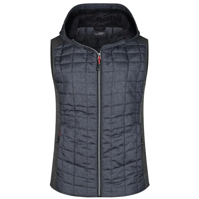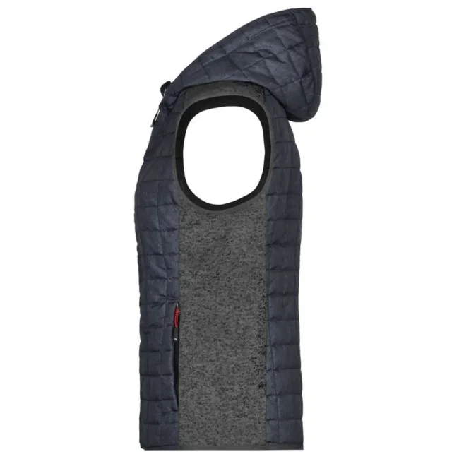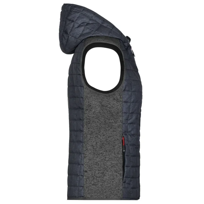 Tessuto esterno: 100% poliestere, rivestimento: 100% poliammide, imbottitura: 100% poliestere. Gilet in tessuto morbido e caldo, look melange, cappuccio regolabile internamente, chiusura con zip, tasche laterali con zip, 2 tasche interne, leggermente sfiancato.