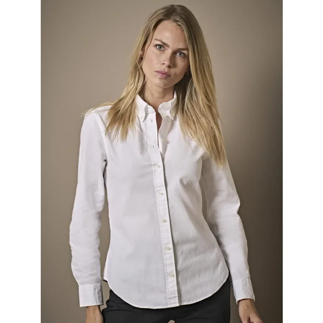 100% cotone. Camicia classica da donna dalla vestibilità morbida, colletto button-down, carré posteriore con piega, passante interno, bordo stondato.