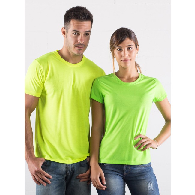 100% poliestere single jersey. T-shirt manica corta set-in, girocollo, traspirante, morbida al tatto, protegge dagli UV, adatta alla sublimazione, struttura con cuciture laterali.