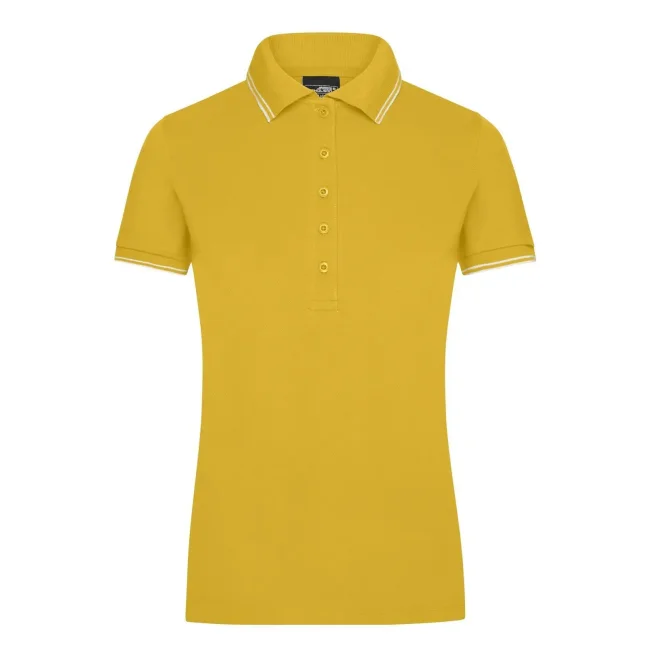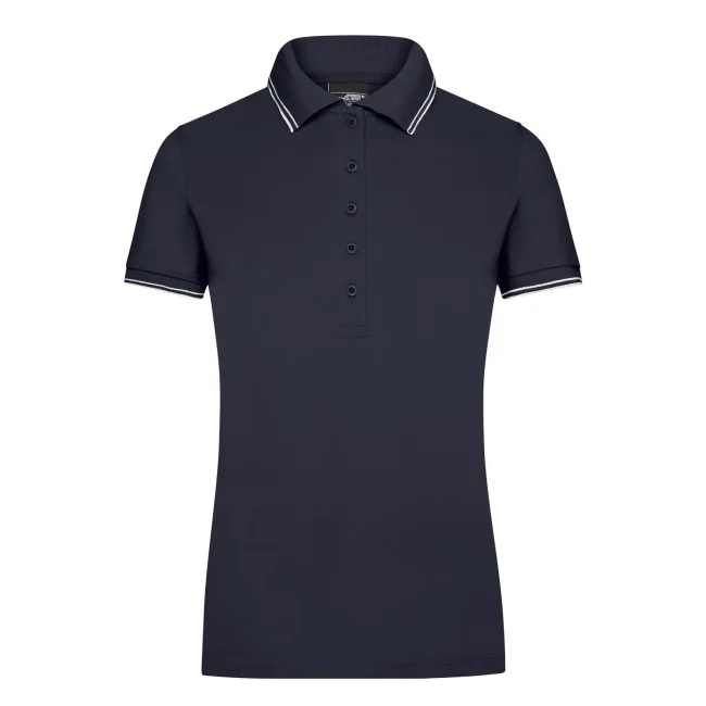 95% cotone, 5% elastan. Maglietta polo in tessuto elastico piqué Colletto e giromanica con bordini in maglia e strisce a contrasto, Spacchetti laterali in colore contrastante, 5 bottoni, taglio sagomatoTessuto esterno (190 g/m²).