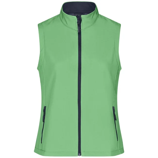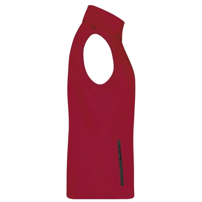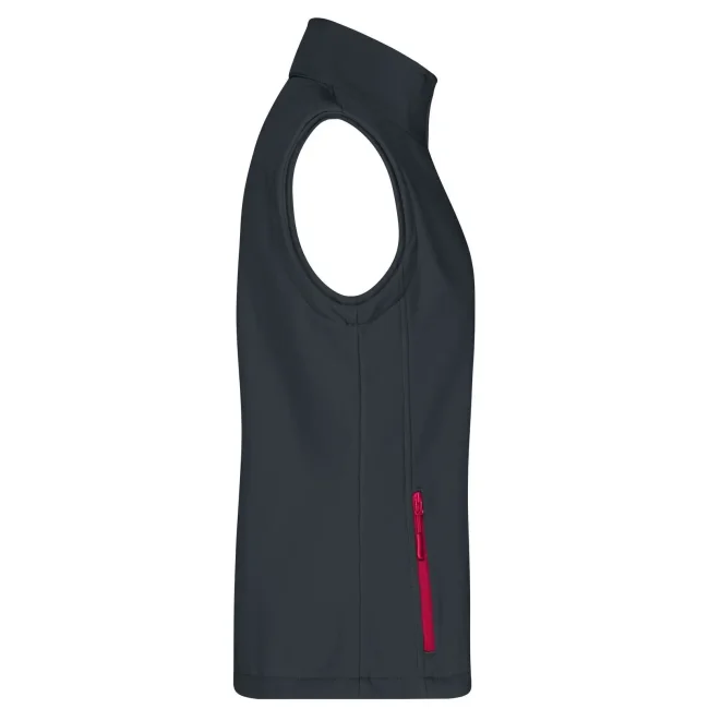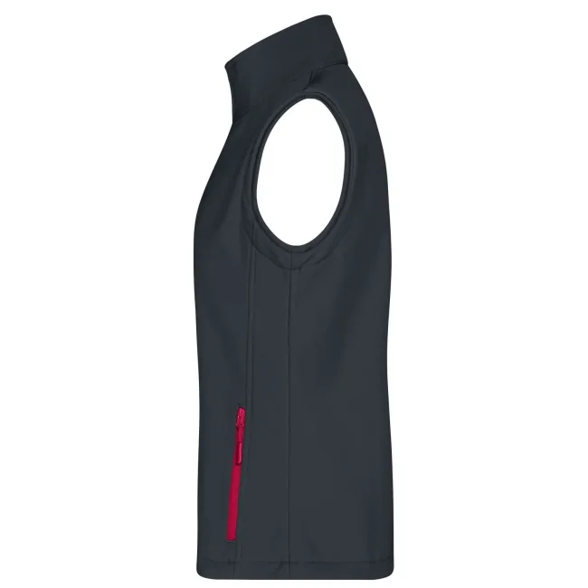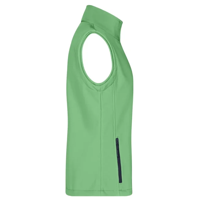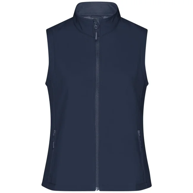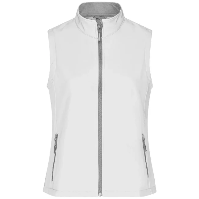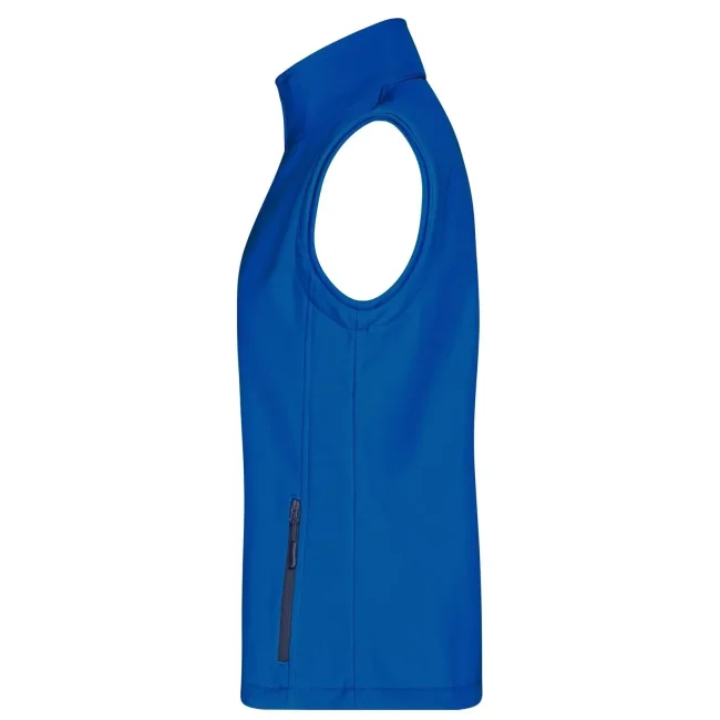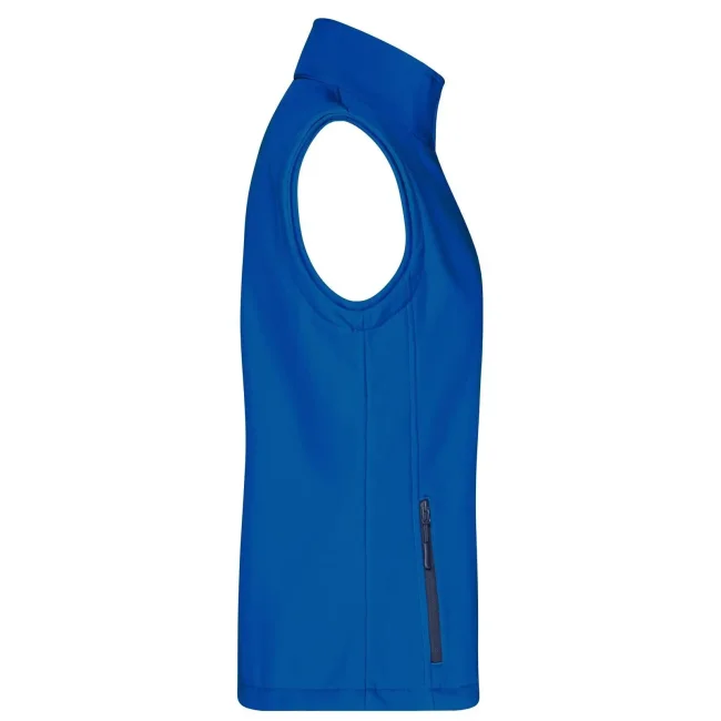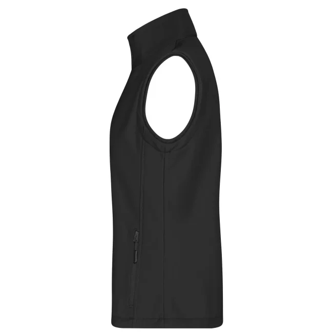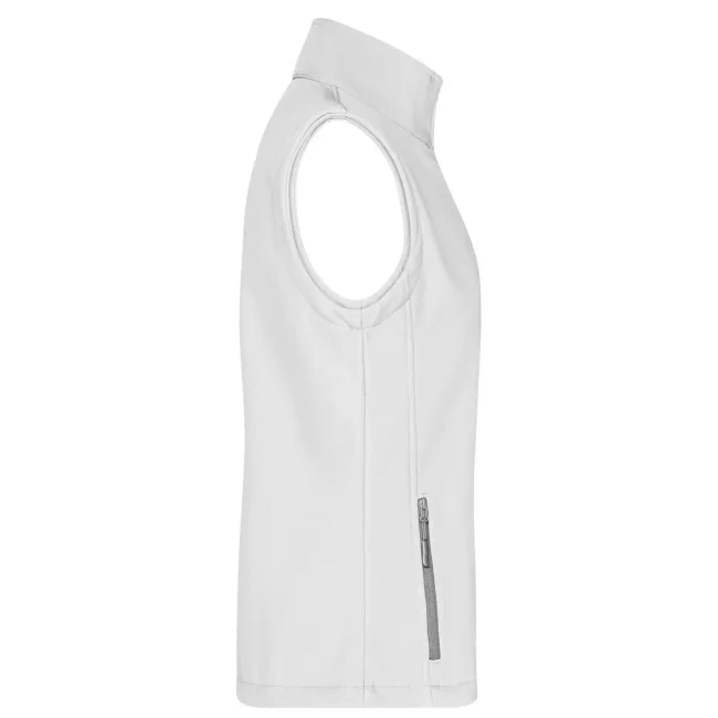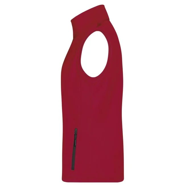 100% poliestere. Gilet softshell a due strati, stampabile, idrorepellente, antivento, traspirante, lato interno in morbido micropile, Zip anteriore a tutta lunghezza, nascosta e riflettente con protezione per il mento, 2 tasche laterali con cerniera, 2 tasche interne, sciancrata, 100% poliestere, antivento e idrorepellente, sfiancato.