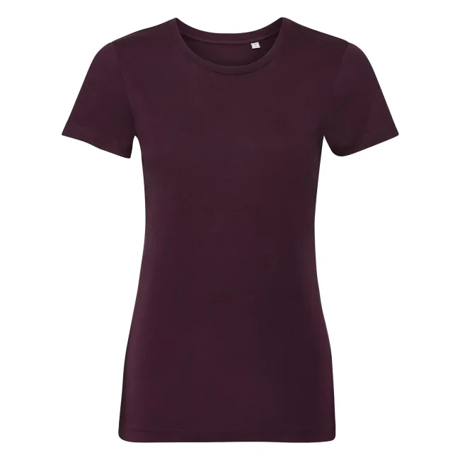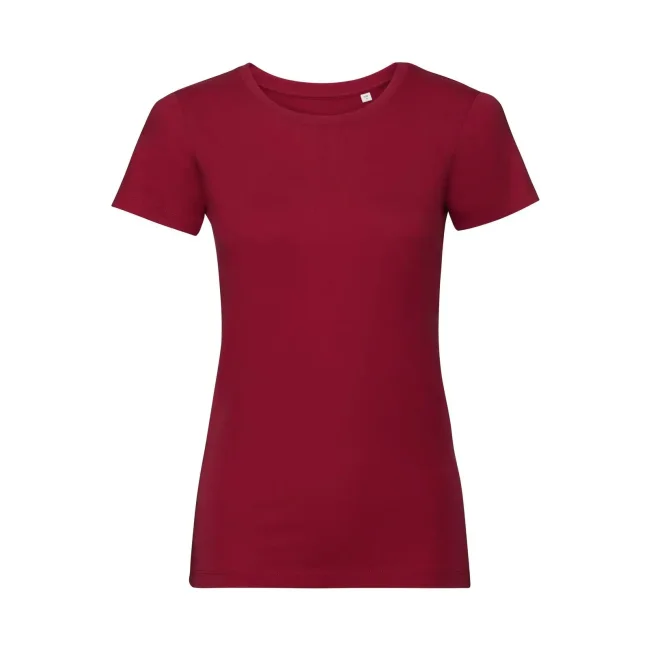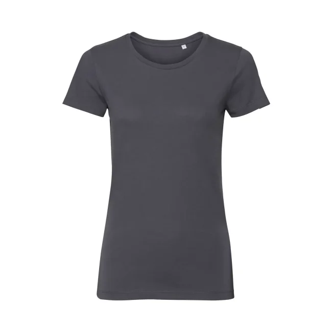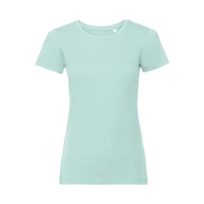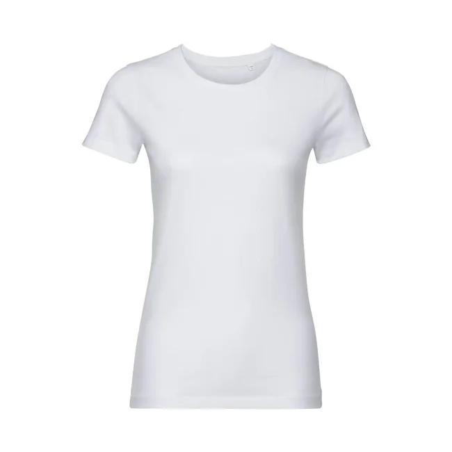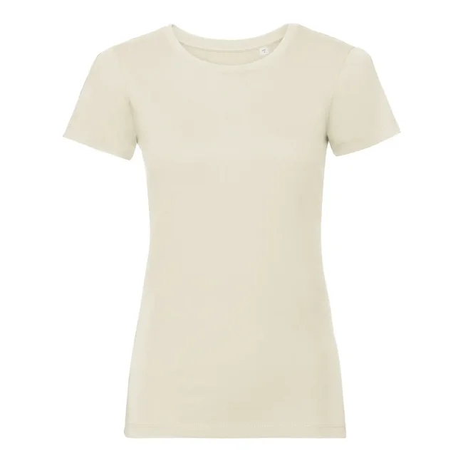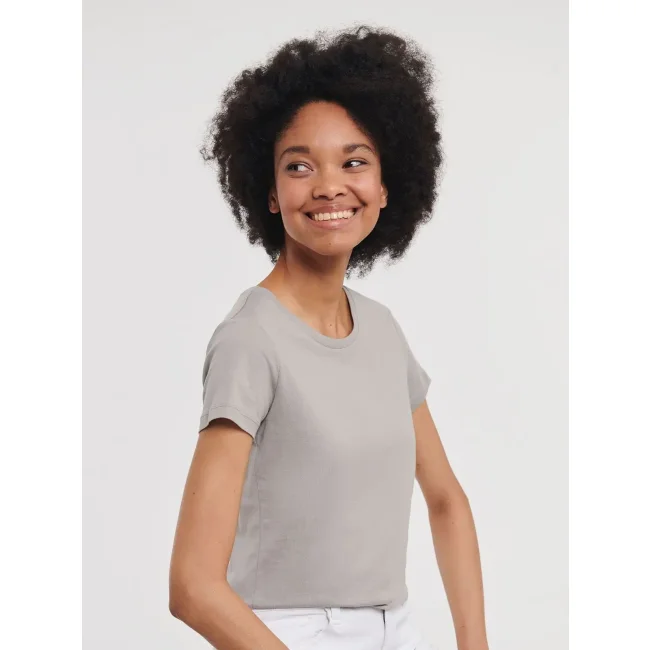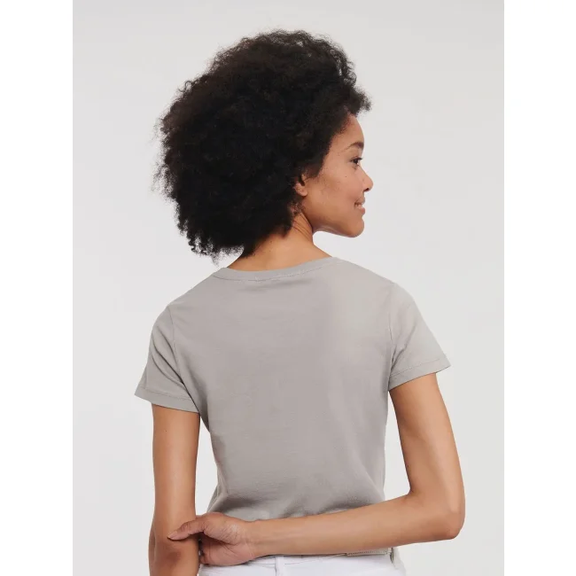 100% Cotone ring-spun organico. T-shirt da donna con nastro di rinforzo spalla-spalla, fascia del colletto in lycra, cuciture laterali, vestibilità sagomata. (Col. LX 97% cot. 3% visc.)