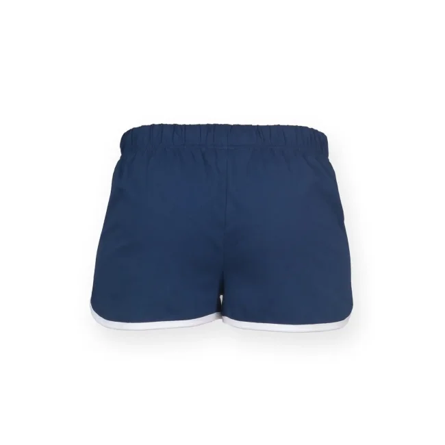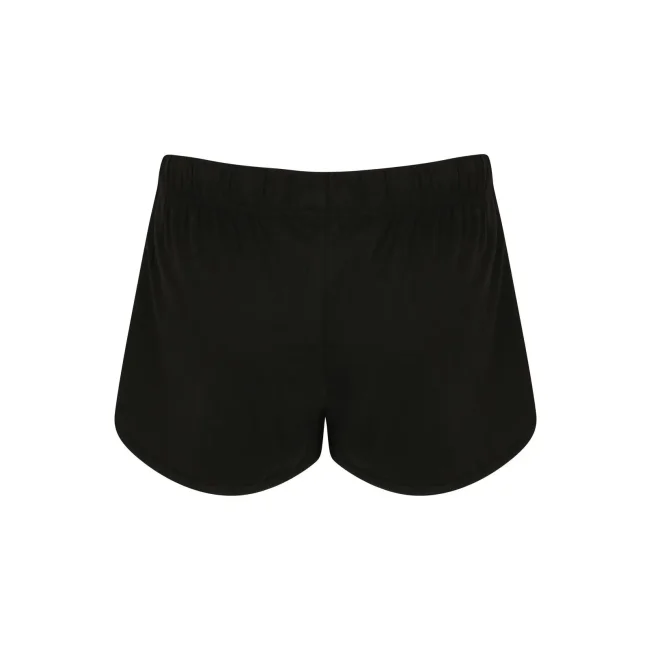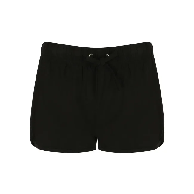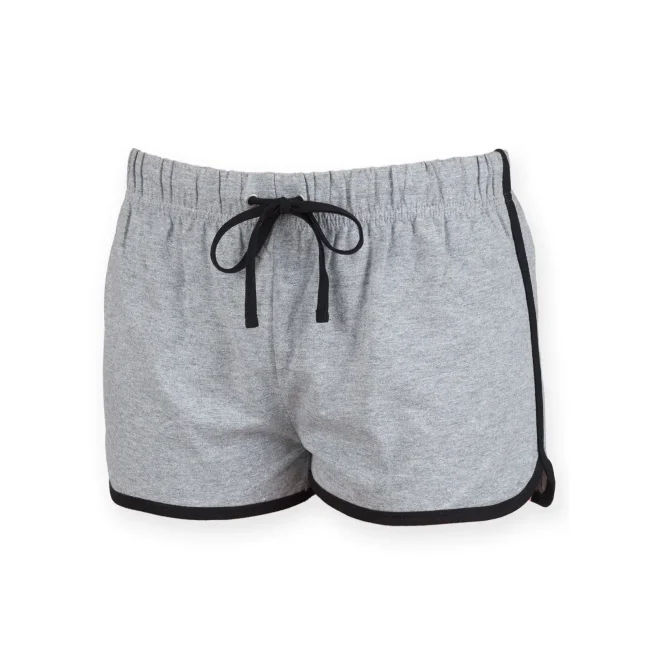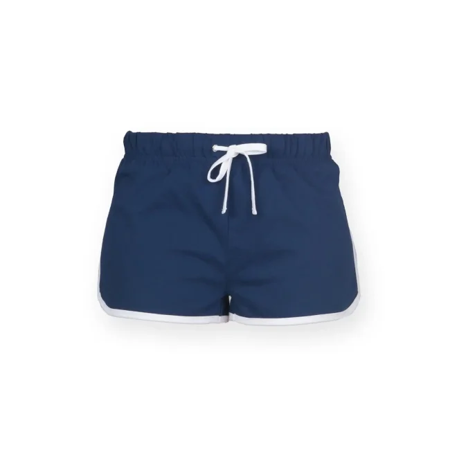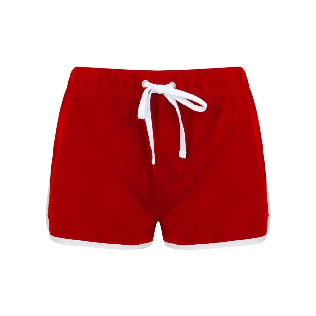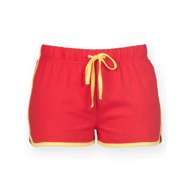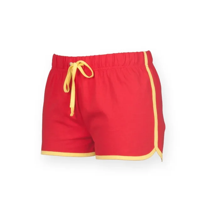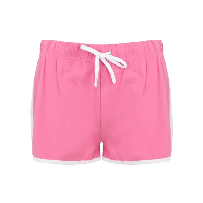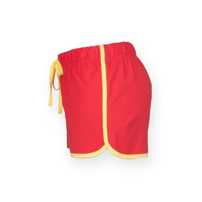 100% cotone single jersey. Pantaloncini vintage, orlo stondato in contrasto, elastico in vita con cordoncino in tessuto di colore contrastante.
