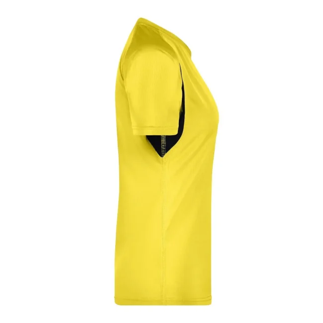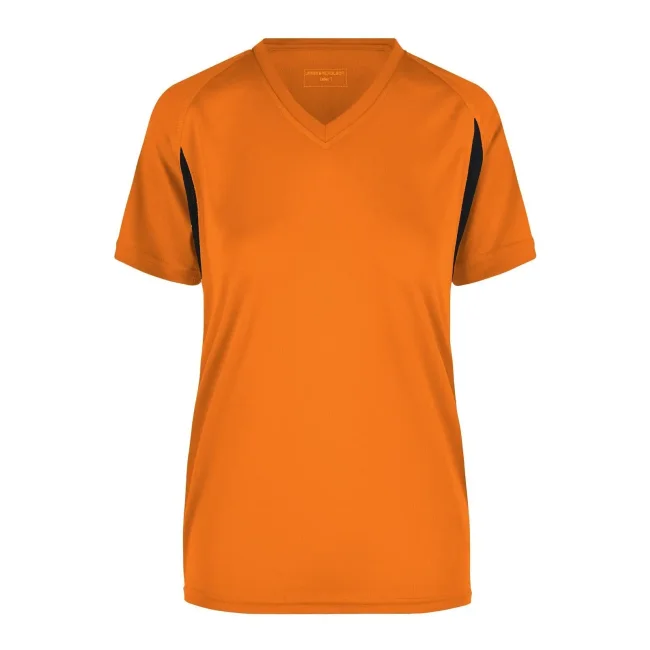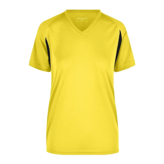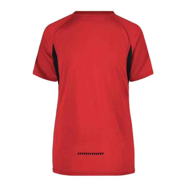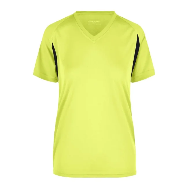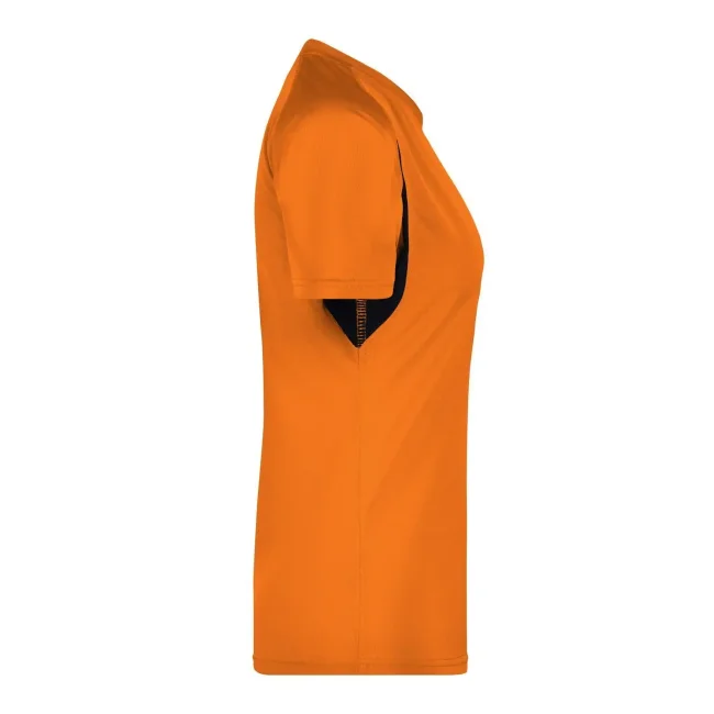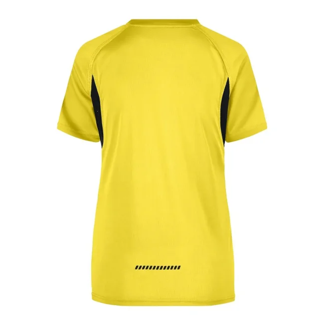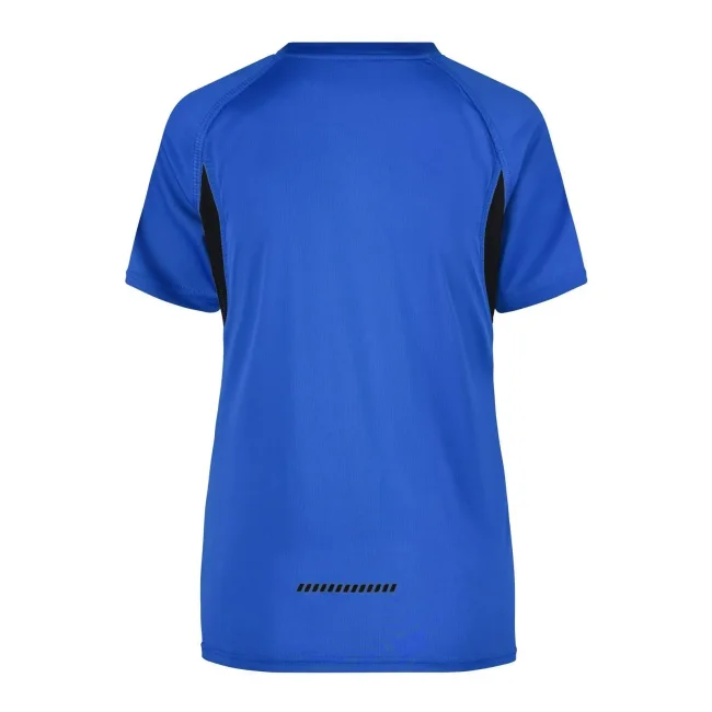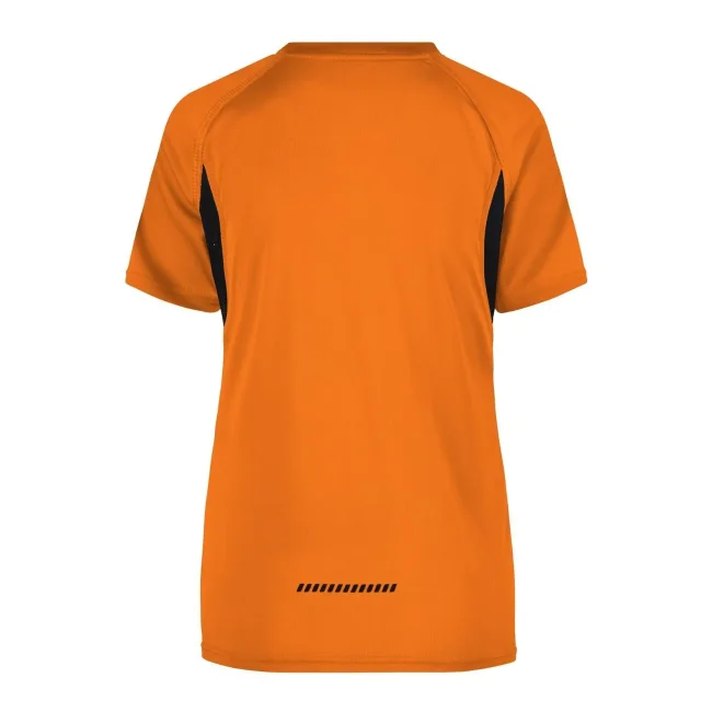 100% poliestere. T-Shirt da corsa Confortevole da indossare, regola l'umidità del corpo, traspirante e ad asciugatura rapida. Inserti in rete a contrasto, stampa catarifrangente sul retro. Tessuto esterno (140 g/m²). Collo a V.
