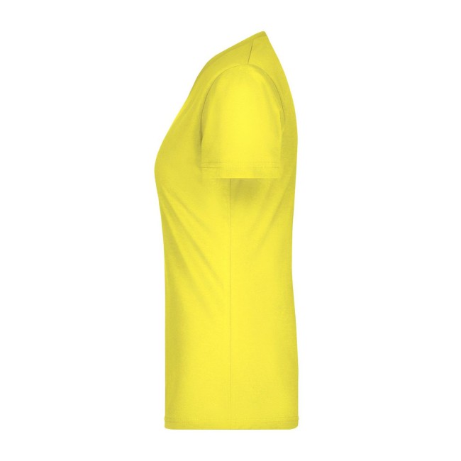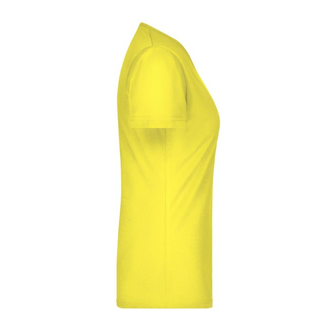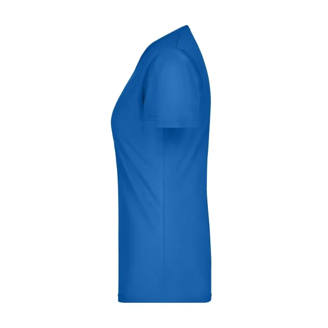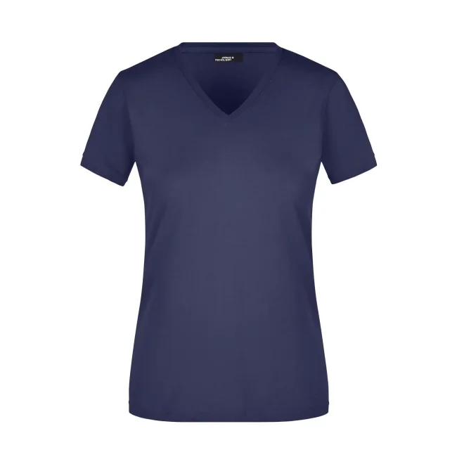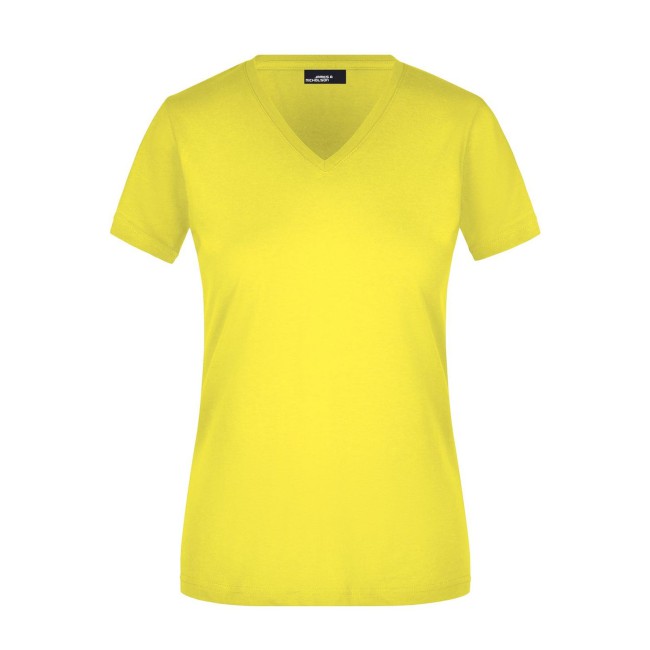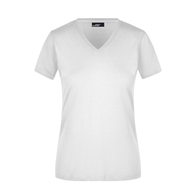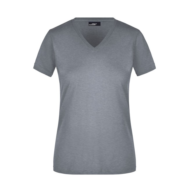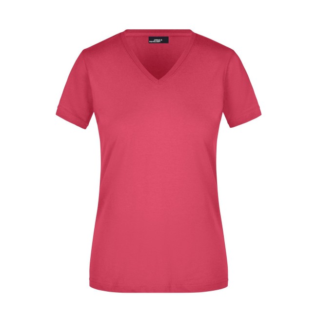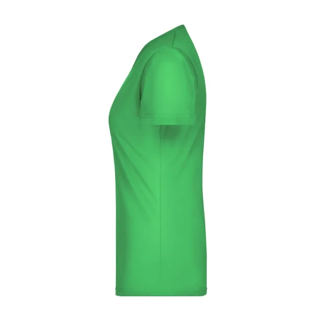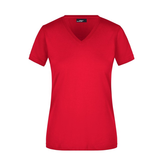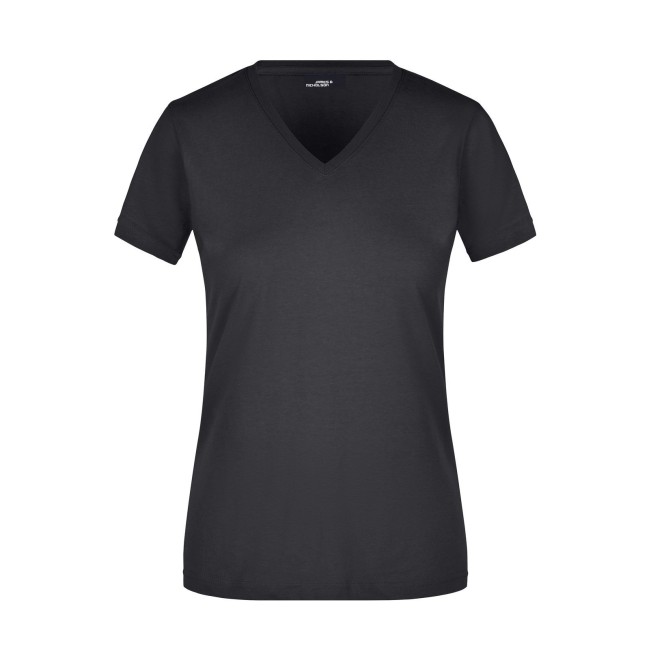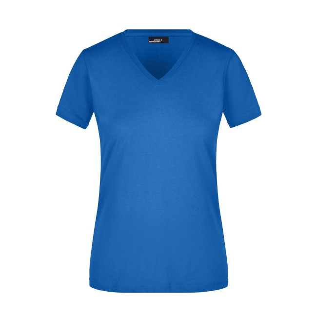 100% cotone. T-shirt slim-fit collo a V Single jersey che non si stringe e mantiene la sua forma, Forma slim-fit con cuciture laterali. Collo 1:1 bella nervatura. Tessuto esterno (160 g/m²), manica corta, Donna.