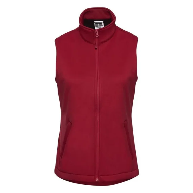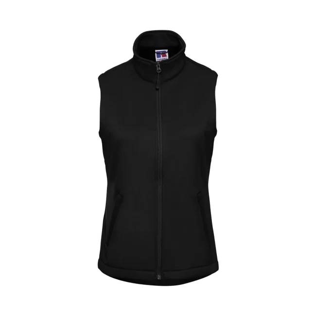 100% poliestere rivestito in DuPontTM Teflon DWR (Durable Water Resistance). Giacca smanicata in softshell a doppio strato traspirante e resistente a vento e acqua. Due tasche con zip, interno in micropile.