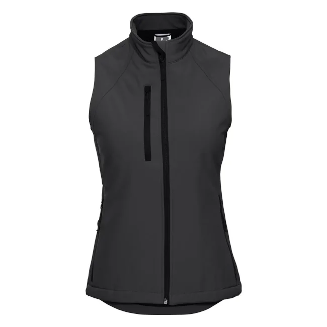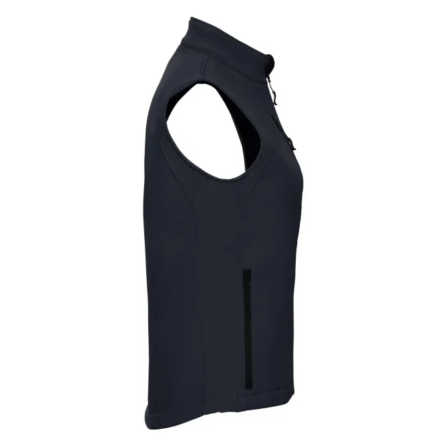 92% poliestere, 8% elastane. Giacca smanicata a 3 strati in softshell. Traspirante, resistente a vento e acqua. Tasche laterali e sul torace con rivestimento interno. Lavabile a 40°C (non usare ammorbidente).