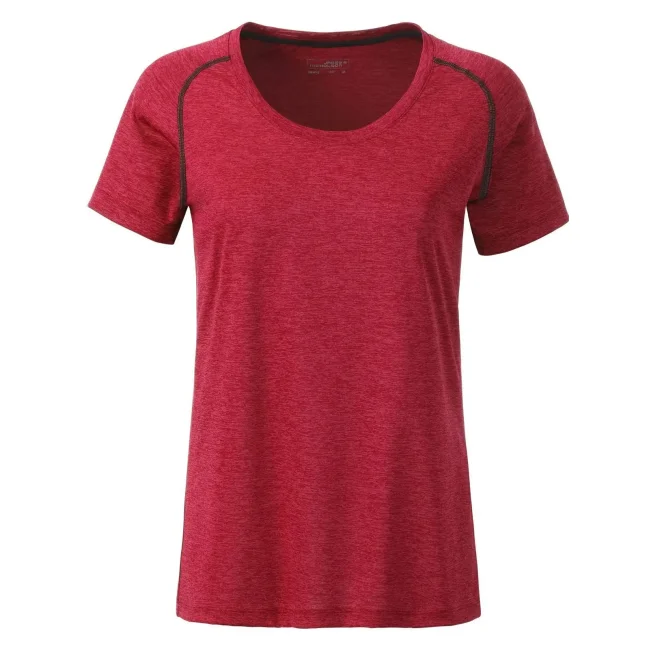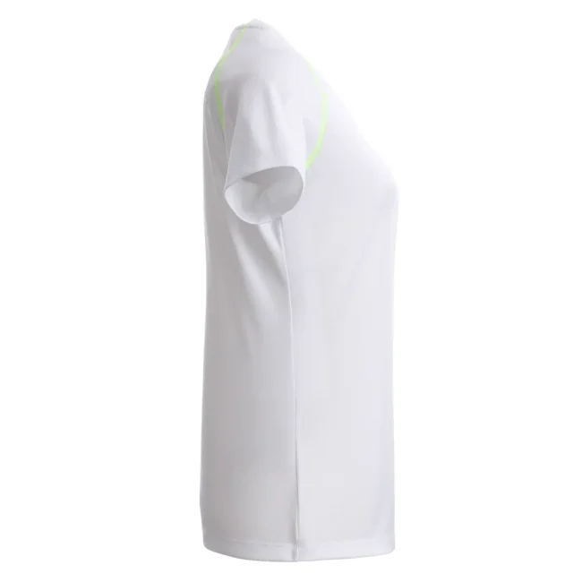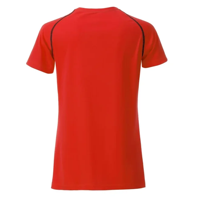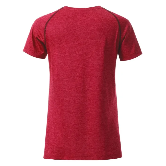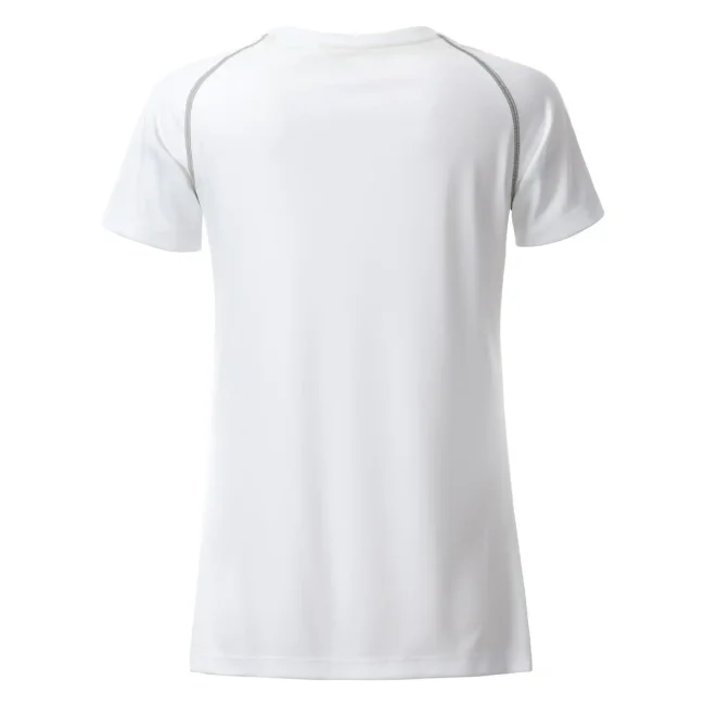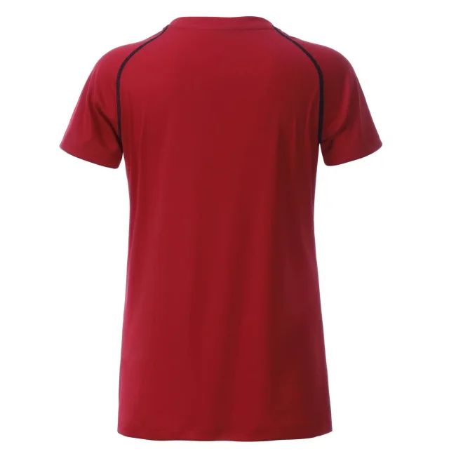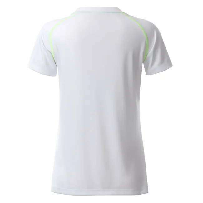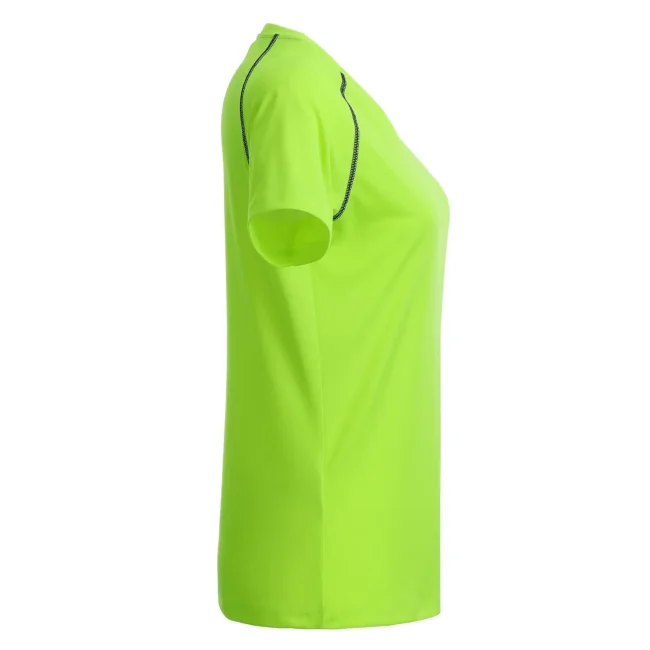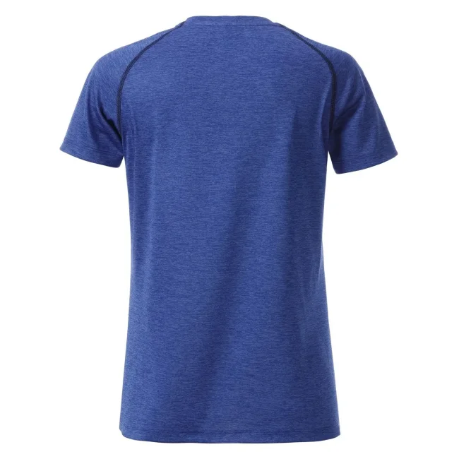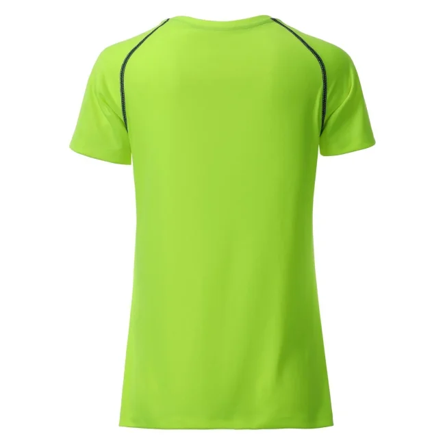 100% poliestere. T shirt donna per fitness e sport Transpirante e con regolazione umidità, Asciugatura rapida, leggera e confortevole, Maniche raglan, collo rotondo, Contrasto cuciture piatte sul davanti e sul retro, leggermente avvitata Tessuto esterno (130 g/m²).