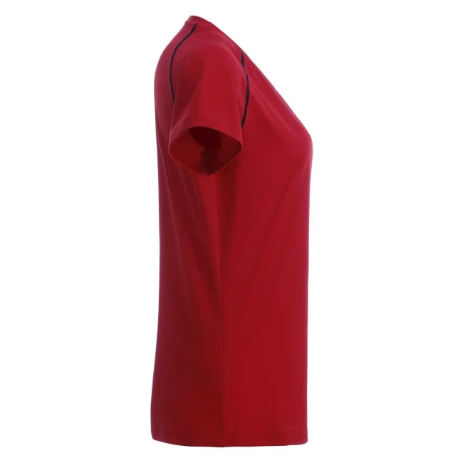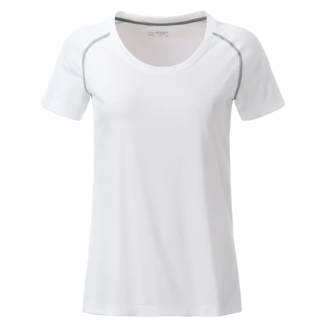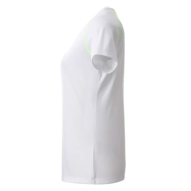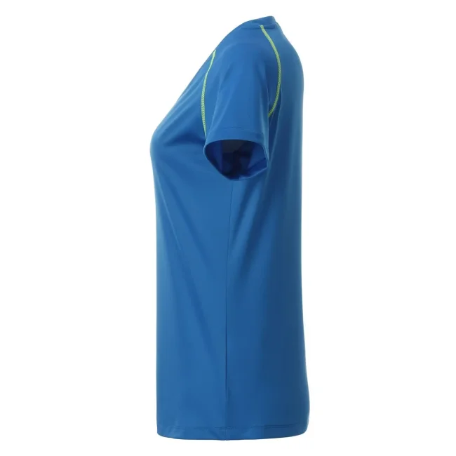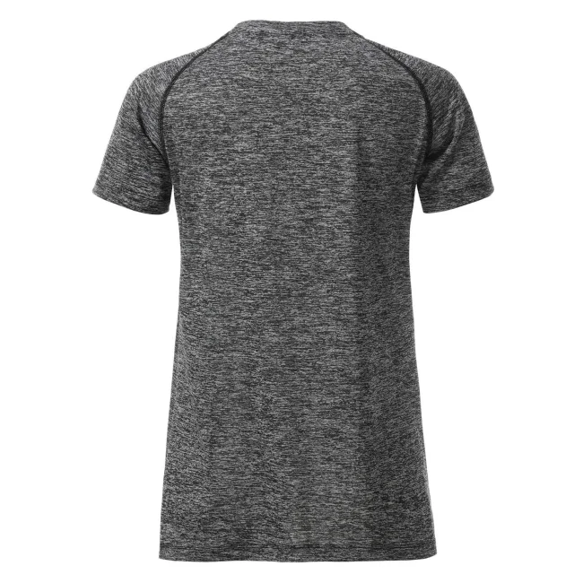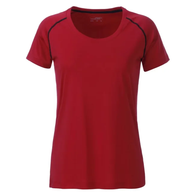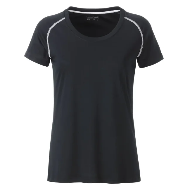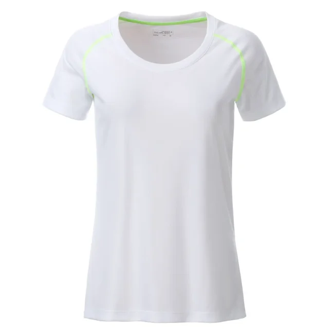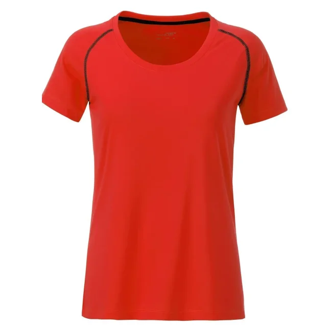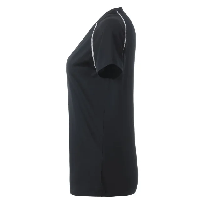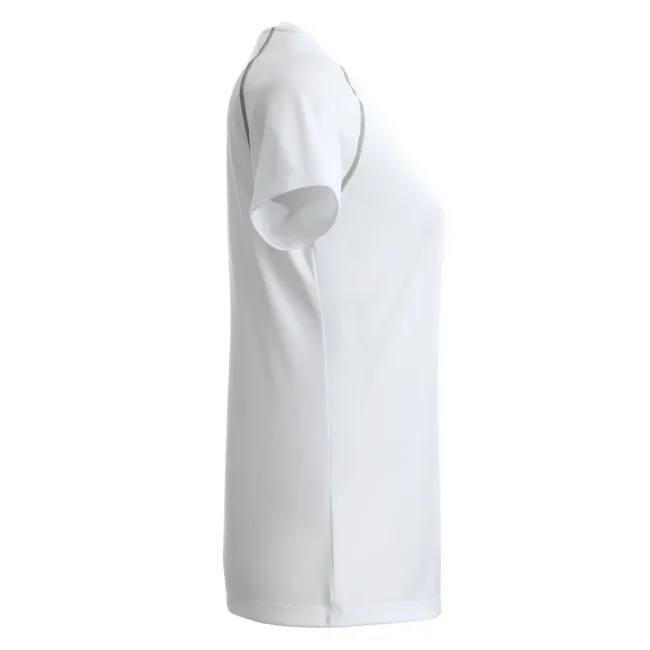 100% poliestere. T shirt donna per fitness e sport Transpirante e con regolazione umidità, Asciugatura rapida, leggera e confortevole, Maniche raglan, collo rotondo, Contrasto cuciture piatte sul davanti e sul retro, leggermente avvitata Tessuto esterno (130 g/m²).