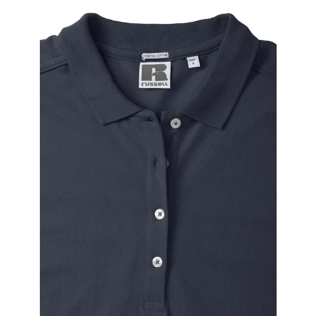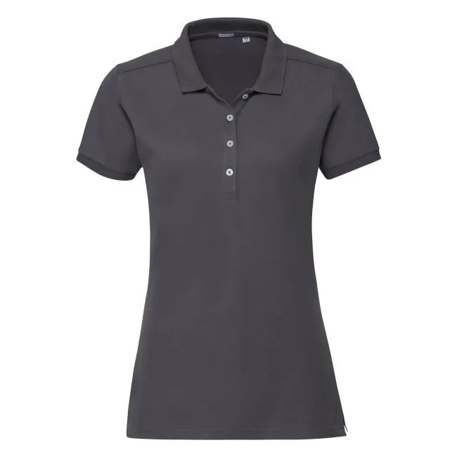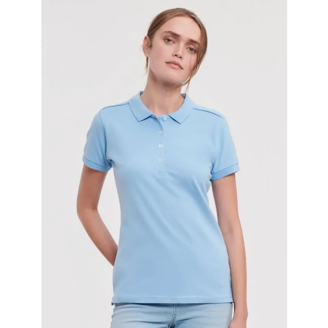 95% cotone, 5% lycra. Polo a maniche corte set-in, morbida al tatto, 4 bottoni a contrasto, colletto con risvolto sottile, maniche con costine, struttura con cuciture e spacchetti laterali, leggermente sfiancata. Light oxford: 88% cot. 7% vis. (White: 205 g/m²).