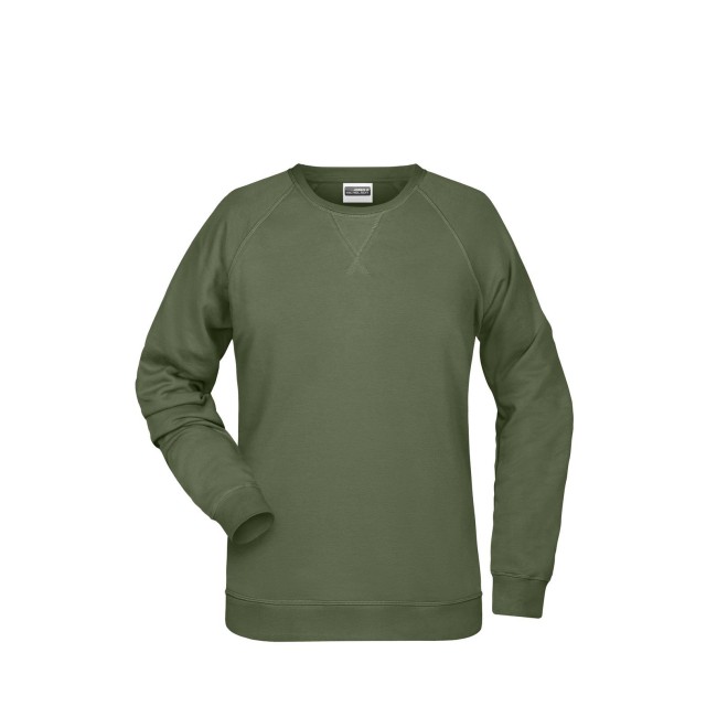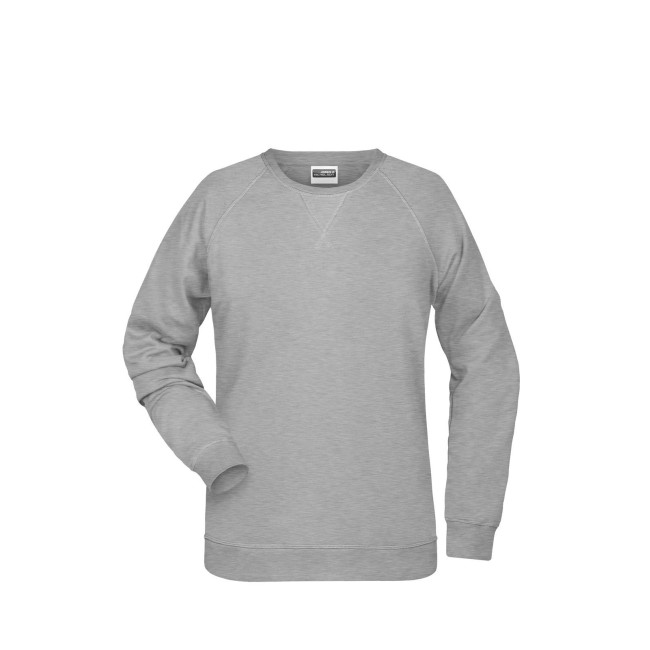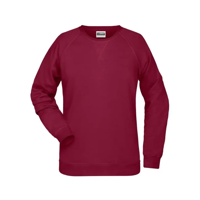 85% cotone organico ring-spun, 15% poliestere. Felpa da donna in tessuto di alta qualità French Terry, maniche raglan,girocollo classico, colletto e fascette con elastan, colletto patch, etichetta strappabile, leggermente sfiancata.