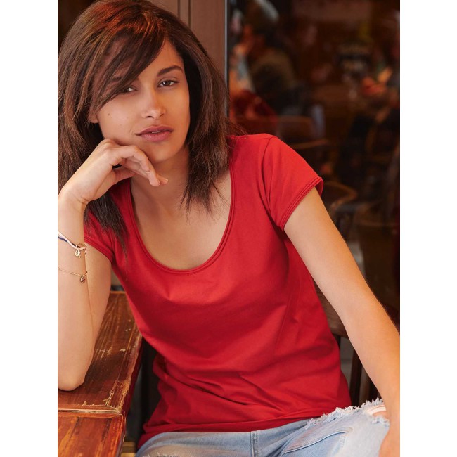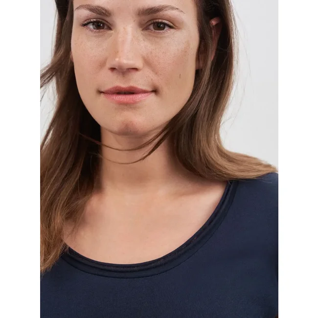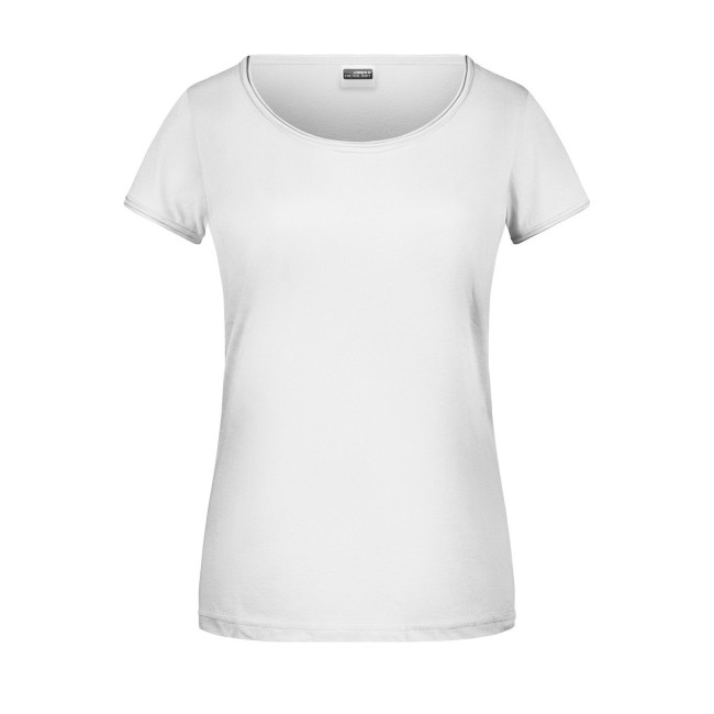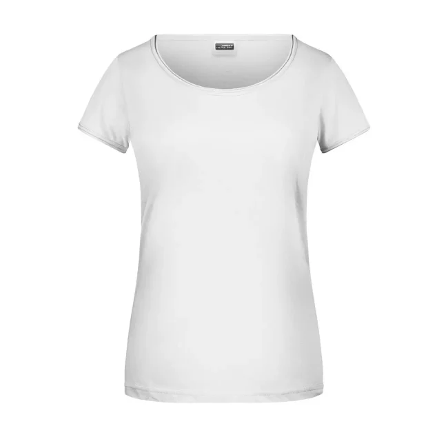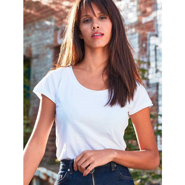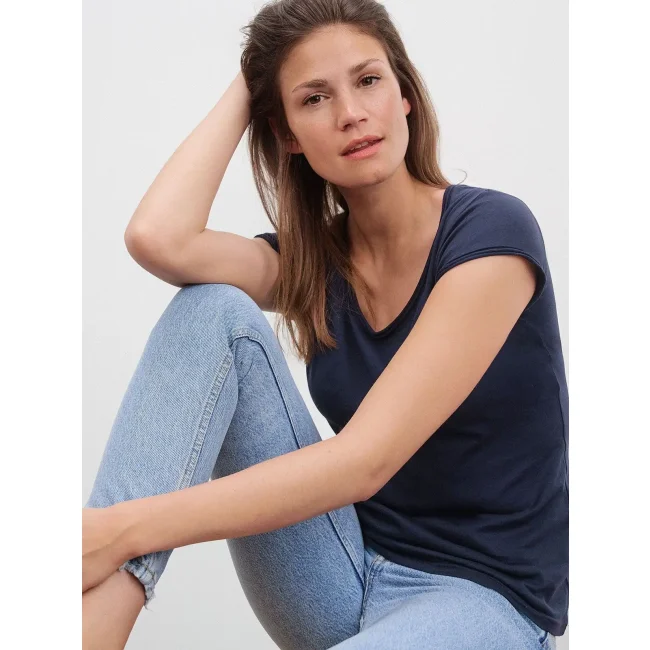 100% cotone organico single jersey. T-shirt con profondo girocollo, manica corta con orlo arrotolato, leggermente sfiancata. Etichetta strappabile, struttura con cuciture laterali.