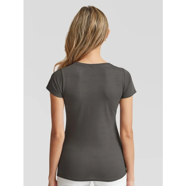 100% cotone filato ad anelli Belcoro. T-shirt manica corta girocollo con costina in cot. e Lycra, fettuccia interna per maggiore comfort, leggermente sfiancata, scollatura femminile, struttura con cuciture laterali. Col. 94: 97% cot. 3% pol. Col. HD, VF, R6, RX, VH: 50% cot. 50% pol. (Col. 30: 160 g/m²).
