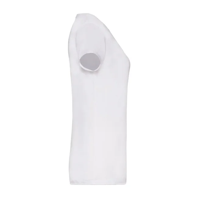 100% cotone. T-shirt manica corta set-in, scollo profondo a V in costina, leggermente sfiancata, nastro di rinforzo alle spalle, struttura con cuciture laterali. Col. 94: 97% cot. 3% pol. Col. HD: 50% cot. 50% pol. (Col. 30: 160 g/m²).