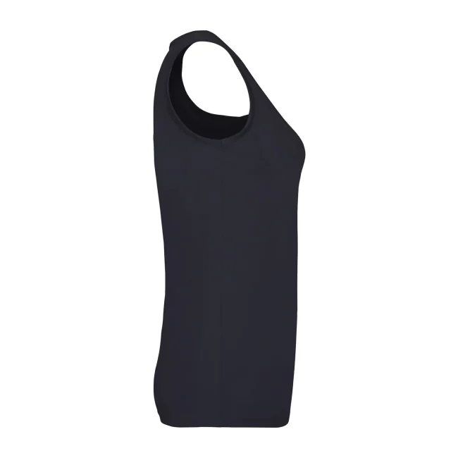100% cotone. Canotta, girocollo. Leggermente sfiancata, struttura con cuciture laterali. Girocollo e giromanica con fettuccia dello stesso tessuto. Tessitura compatta. Col. 94: 97% cot. 3% pol. (Col. 30: 160 g/m²).