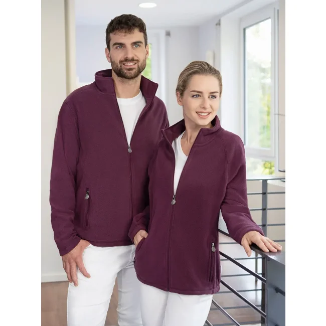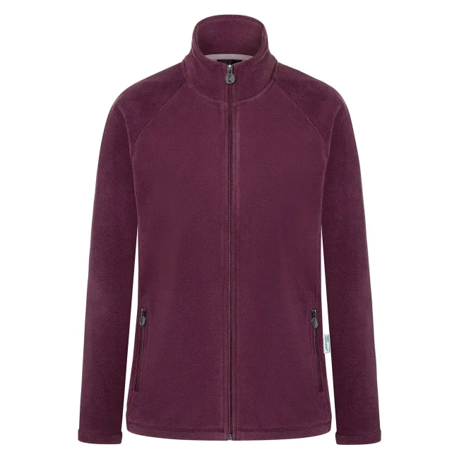 100% poliestere riciclato, 280 g/m². Giacca in pile da donna calda, resistente e sostenibile, easy-care. Colletto alto, felpata all'interno e all'esterno. Maniche raglan, rinforzi sulle spalle, elastico ai lati della vita, 2 tasche laterali con cerniera, zip tono su tono. Prodotto certificato GRS, Green Button e Oeko-Tex.
