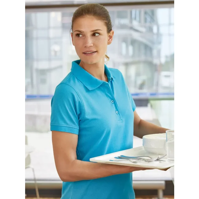 50% cotone, 50% poliestere. Robusta polo e facile da pulire Grazie ad un mix di materiali di cotone e poliestere mantiene la sua forma e ha un ottima resistenza ai lavaggi. Colletto polo lavorato a maglia e polsini sleeveband, Fettuccia al collo, chiusura con 4 bottoni, spacchi laterali. Lavabile a 60 gradi, adatto per l'asciugatura a macchina Tessuto esterno (200 g/m²).