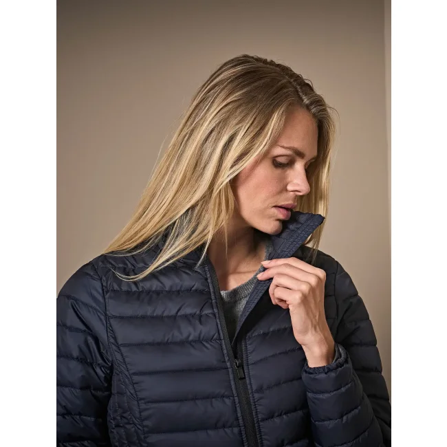 100% poliestere (300T) imbottitura e fodera: 100% poliestere. Giacca da donna, imbottita leggera con zip, idrorepellente, ricamabile, due tasche laterali con zip di qualita' e una tasca interna, polsini elastici.