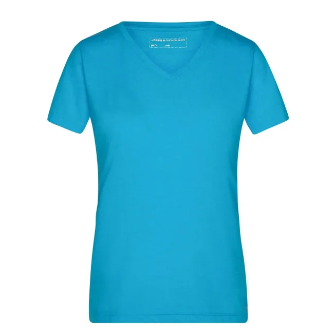 65% poliestere, 35% cotone. T-shirt alla moda con scollatura a V Melange di single jersey di alta qualità, Taglio disinvolto e comodo, Collo a V con elastan, forma avvitata. Tessuto esterno (170 g/m²).