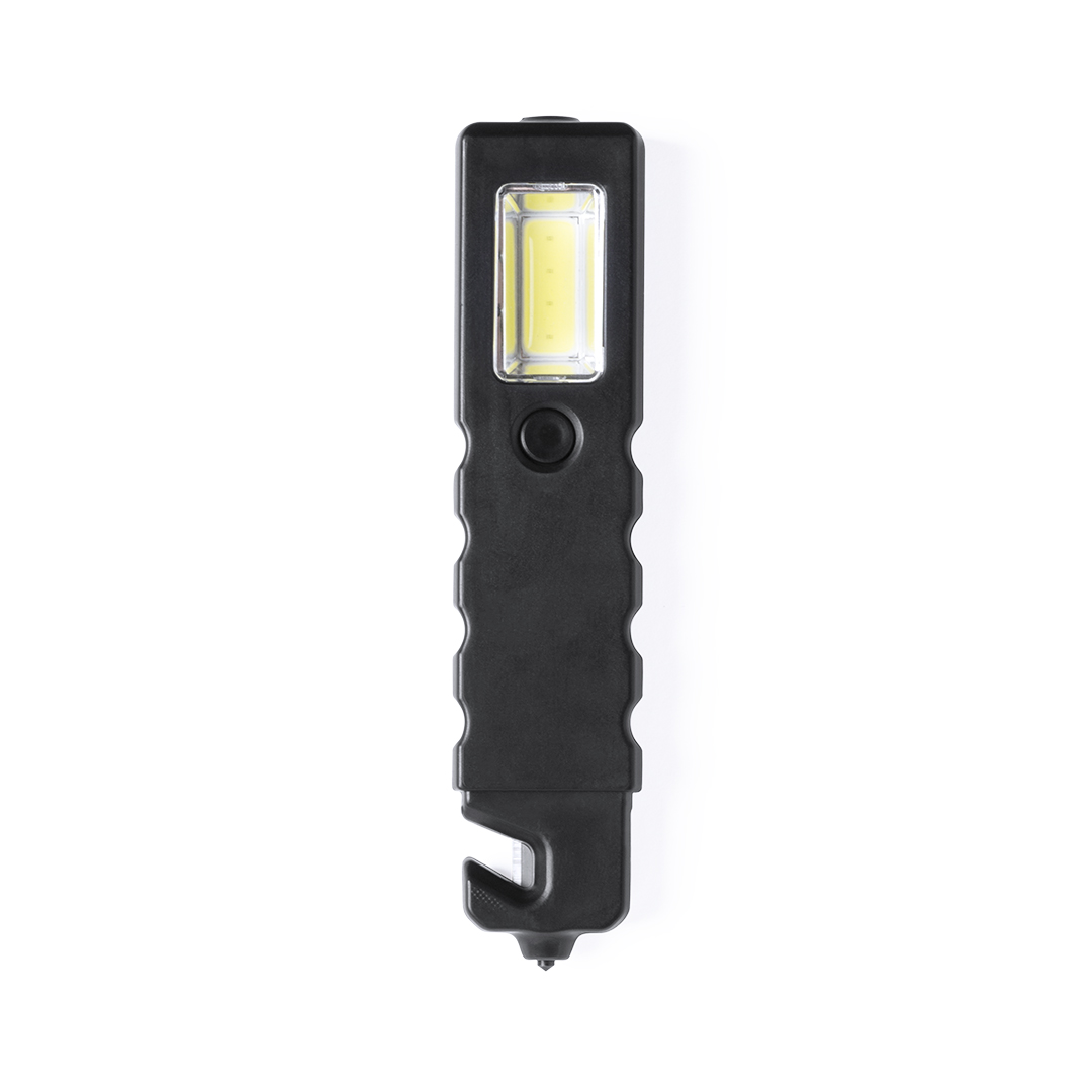 Martello di emergenza 3 in 1 con torcia a LED e 4 luci COB con 3 modalità di illuminazione. Con superficie magnetica e lama tagliacinture.