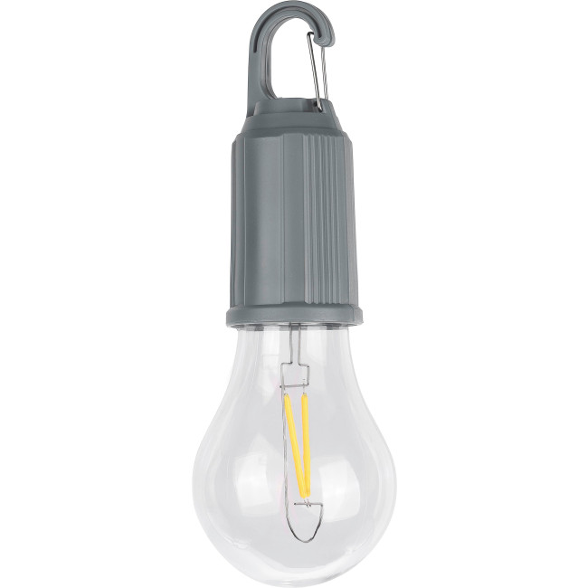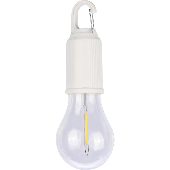 Lampadina in ABS (60 lucette), include batteria ricaricabile da 400 mAh, jack per la ricarica USB-C, dispone di clip in metallo, tre modalità di illuminazione, IPX3
