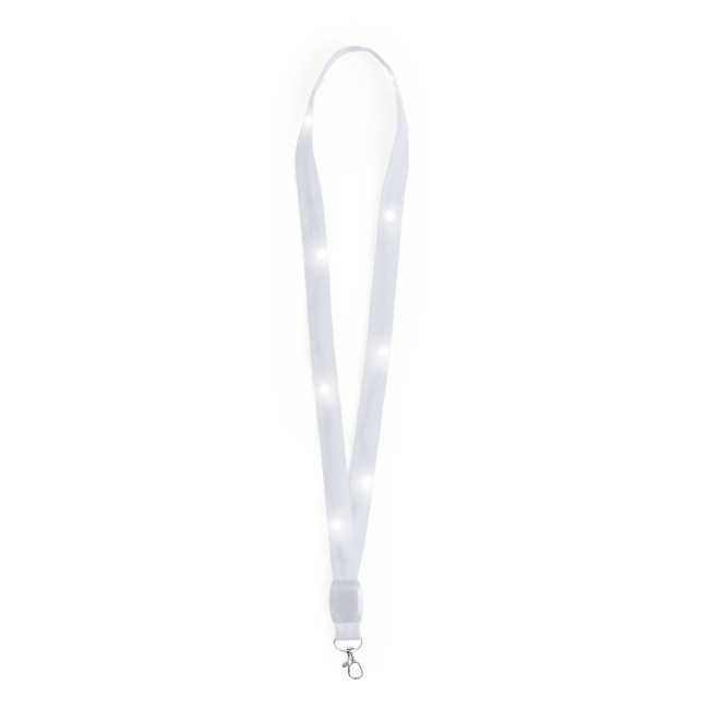 Lanyard originale dotato di luci LED, alimentato da batterie a bottone. Include 8 LED e un interruttore discreto per tre modalità di illuminazione. Presentato in vari colori e con pratico gancio girevole per un facile utilizzo.